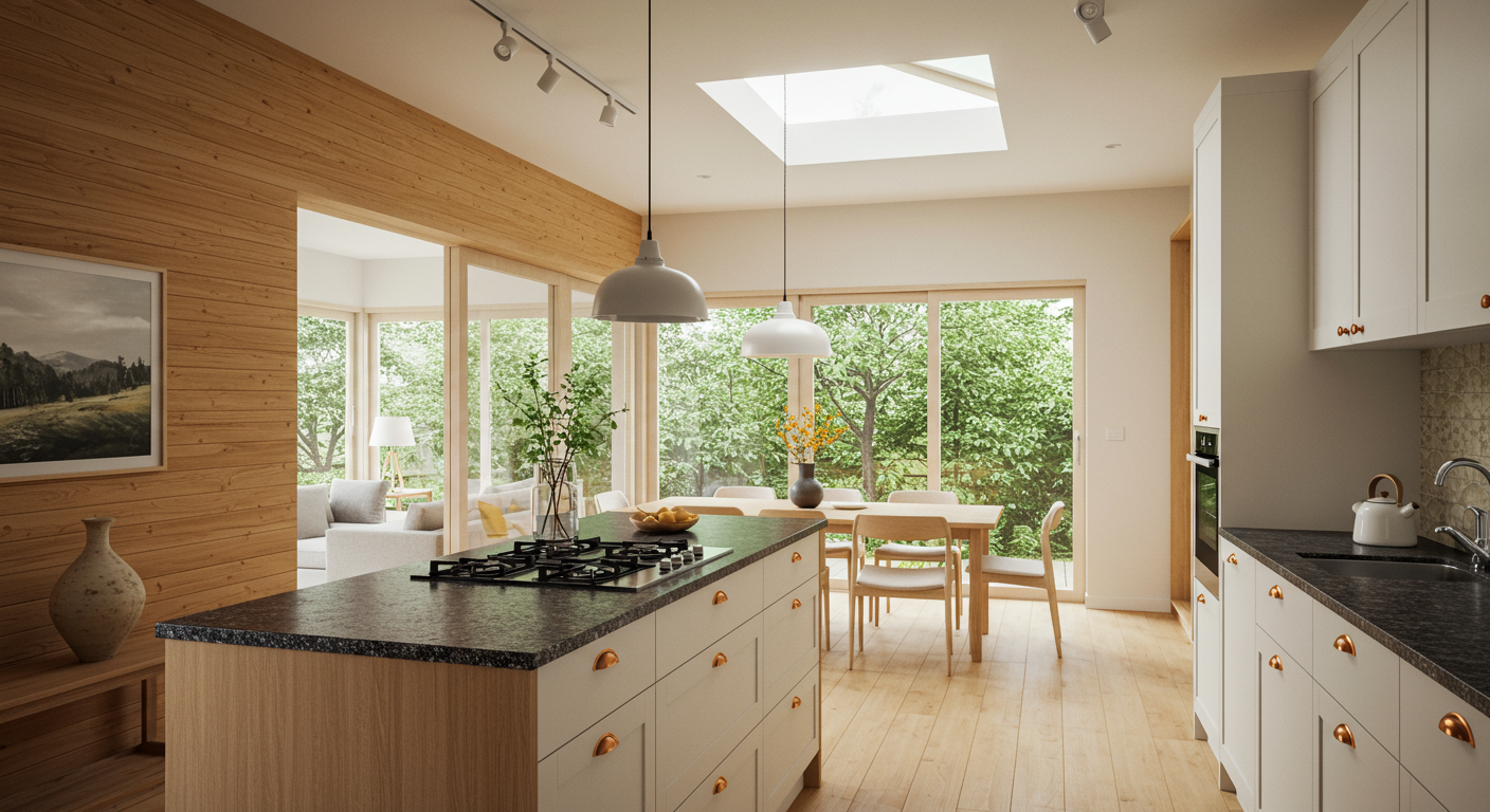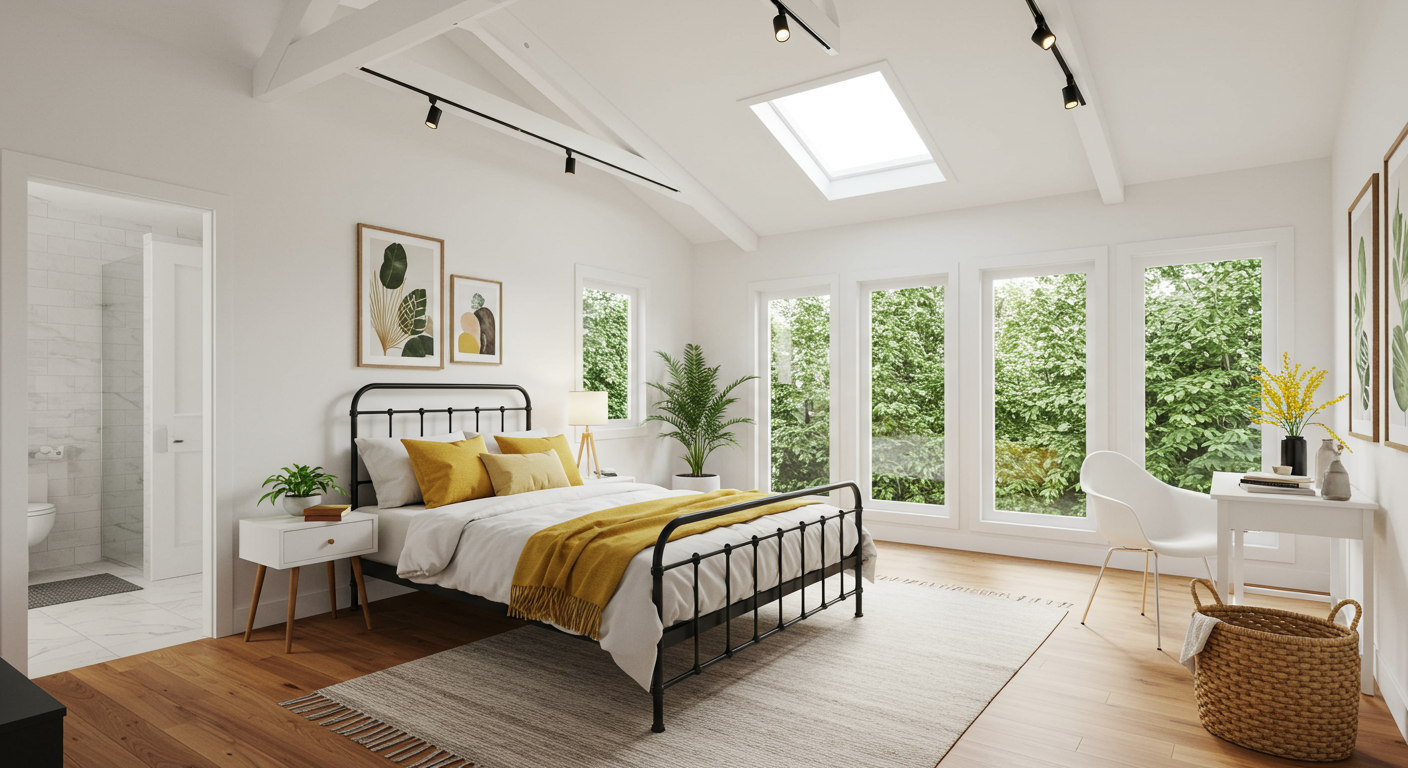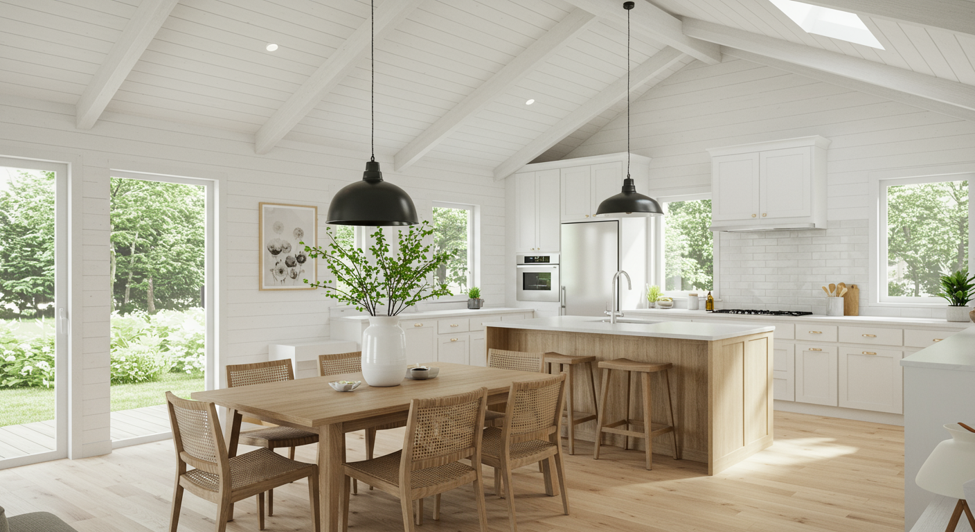 Hardwood floors, vaulted, exposed beam ceilings, skylights
