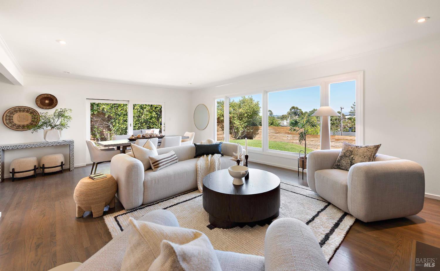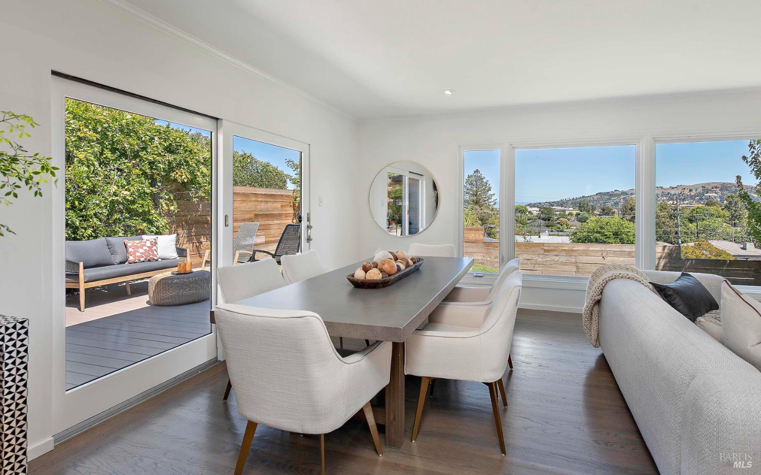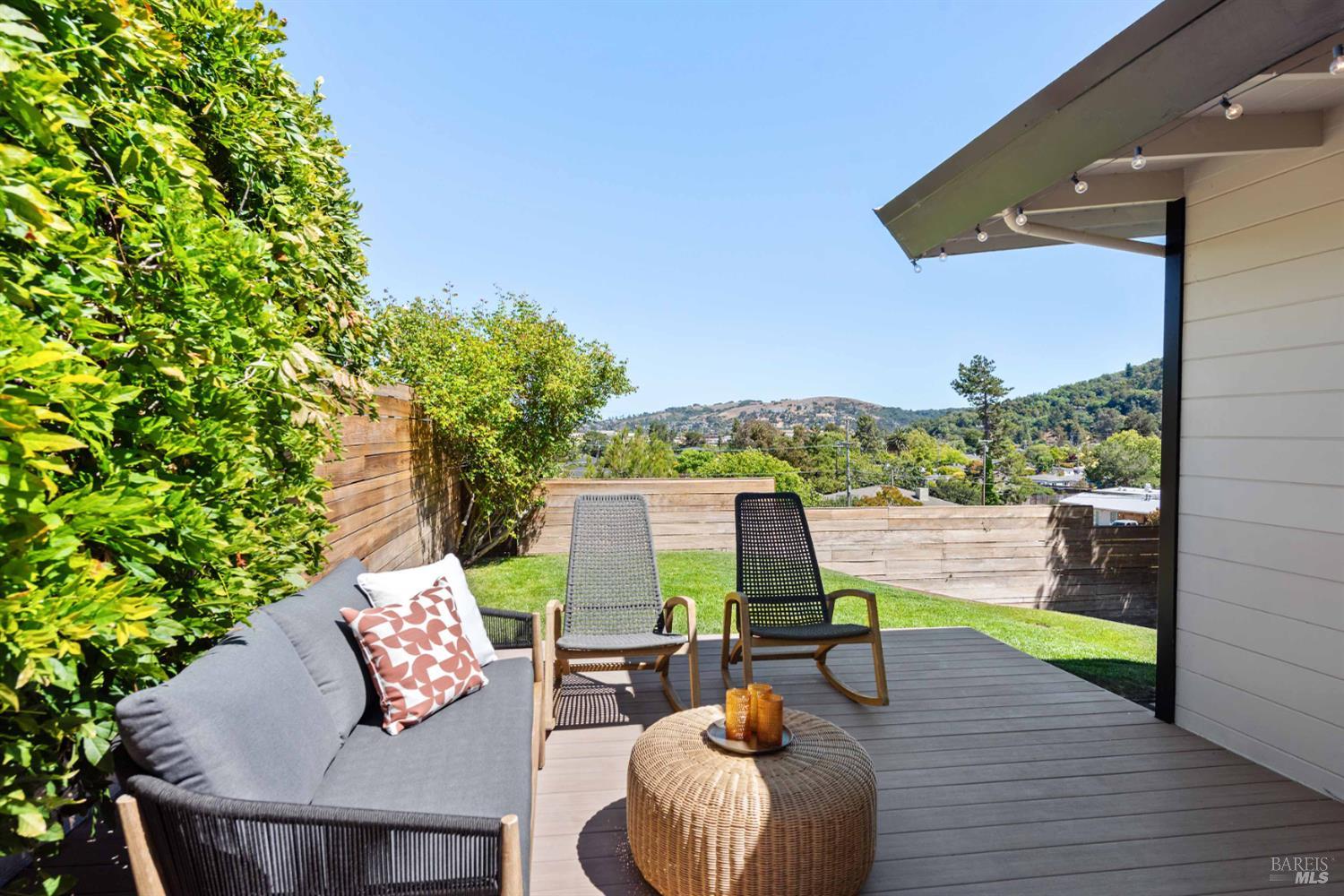 Tucked on a quiet street just two blocks from top-rated Neil Cummins Elementary, this beautifully maintained single-level 3-bedroom, 2-bath home offers the perfect blend of convenience, comfort, and privacy. Elevated slightly above the street on a gentle slope and out of the floodplain, the home enjoys all-day natural light, sweeping views from the East Bay to Mt. Tam, and an airy, open feel throughout. Stylish updates include hardwood floors, central air conditioning, and beautifully remodeled bathrooms featuring marble finishes and sleek modern fixtures. Each west-facing bedroom captures Mt. Tam views, while a separate downstairs office provides a private space for work or guests. Large glass sliders from the main living areas lead to an expansive, sun-drenched deck and lush lawnideal for indoor-outdoor living and entertaining. A covered front porch offers a warm, private entry experience, and a detached two-car garage adds storage and versatility. All of this is just minutes from award-winning schools, parks, shopping at Town Center, and easy 101 accessyet the home feels like a peaceful escape. 13 Ash Avenue is that rare offering that combines elevated style, everyday functionality, and an unbeatable central location.