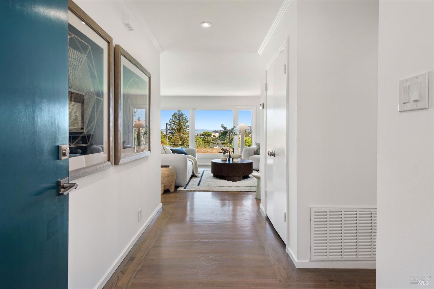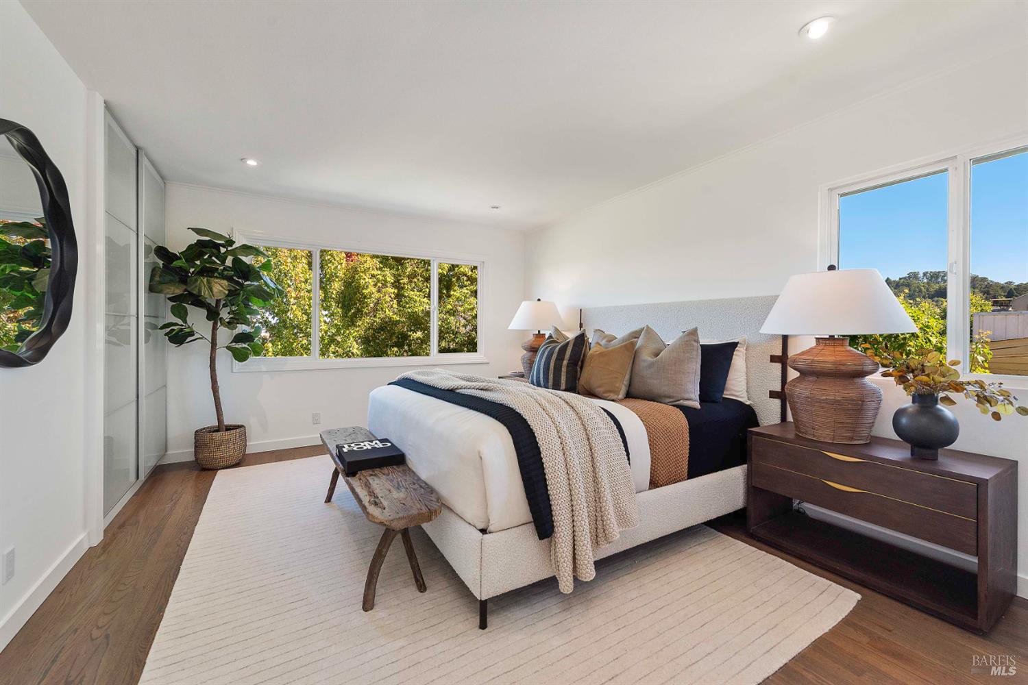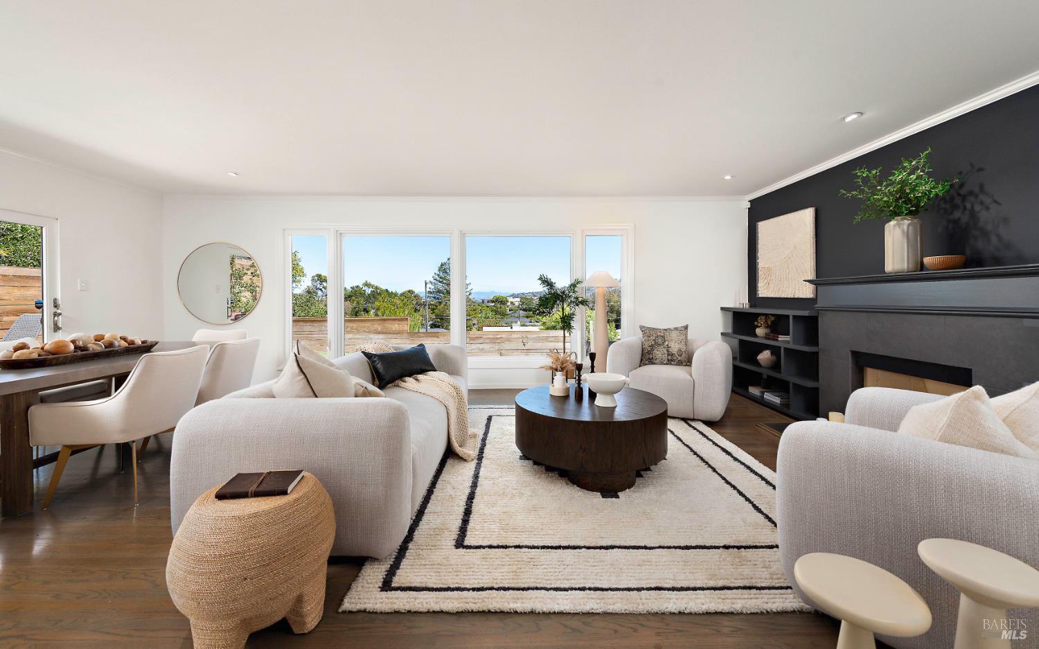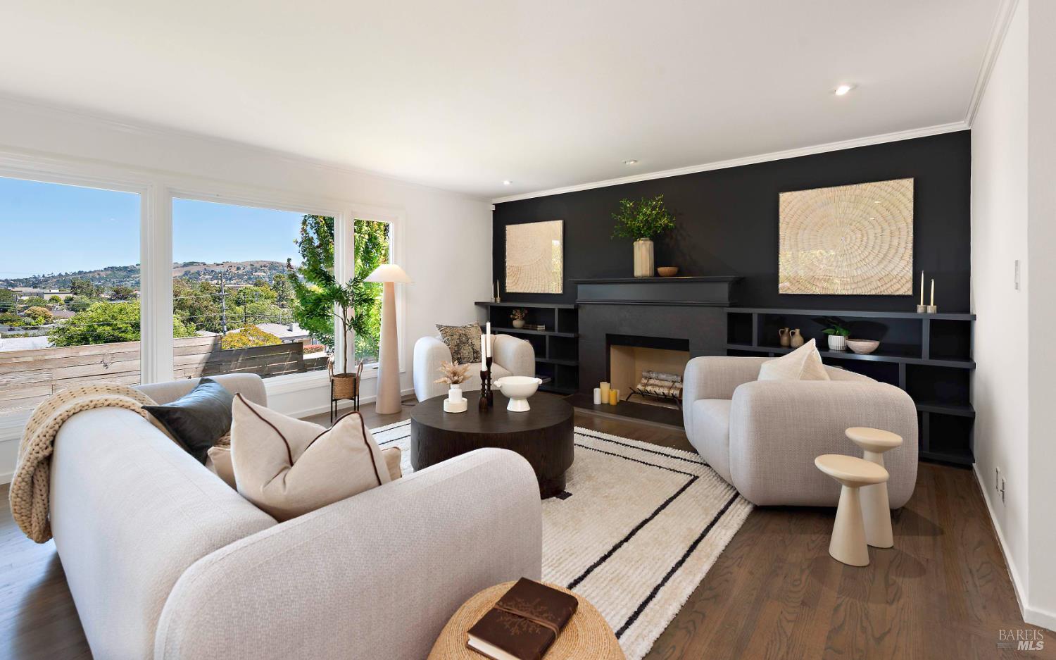 Tucked on a quiet street just two blocks from top-rated Neil Cummins Elementary, this beautifully maintained single-level 3-bedroom, 2-bath home offers the perfect blend of convenience, comfort, and privacy. Elevated slightly above the street on a gentle slope and out of the floodplain, the home enjoys all-day natural light, sweeping views from the East Bay to Mt. Tam, and an airy, open feel throughout. Stylish updates include hardwood floors, central air conditioning, and beautifully remodeled bathrooms featuring marble finishes and sleek modern fixtures. Each west-facing bedroom captures Mt. Tam views, while a separate downstairs office provides a private space for work or guests. Large glass sliders from the main living areas lead to an expansive, sun-drenched deck and lush lawnideal for indoor-outdoor living and entertaining. A covered front porch offers a warm, private entry experience, and a detached two-car garage adds storage and versatility. All of this is just minutes from award-winning schools, parks, shopping at Town Center, and easy 101 accessyet the home feels like a peaceful escape. 13 Ash Avenue is that rare offering that combines elevated style, everyday functionality, and an unbeatable central location.
