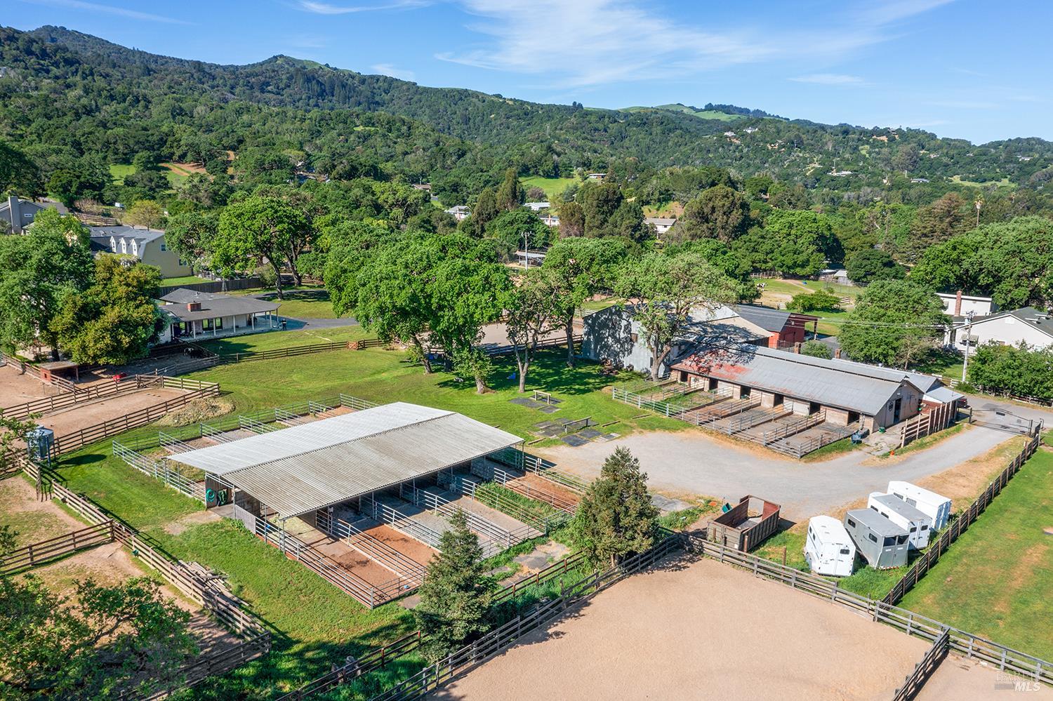 For the horse lover who wants their animals right outside the back door, not boarded miles away, nor managed by someone else, 15 Wildwood Lane is the property you've been waiting for. Set in Indian Valley, one of Marin County's most coveted and quietly kept secrets, and one of its last true connections to the county's agrarian past. While central Marin neighborhoods have given way to sidewalks, retail corridors, and suburban pace, Indian Valley has held its ground. Bridle paths instead of bike lanes, verdant pastures with grazing horses, and a slower, more unhurried way of life that the rest of the county quietly left behind. The equestrian facilities, currently used as a boarding facility, are perfectly suited for the gentleman farmer or the trail rider with large stalls and attached paddocks, open turnouts, wash rack, tack room, hay and grain storage, barn office, and a small arena. No competition infrastructure, no excess. Just a well-built, relaxed private operation with good bones and a bridle path leading directly from the property into Marin's open space lands. Ride out from your own barn and disappear into the hills. The residence matches the setting in quality and intention. At just over 4,000 square feet, the living room soars with redwood plank ceilings and exposed beams, anchored by a stone fireplace and framed by pasture views. The chef's kitchen features custom stone countertops, professional appliances, farmhouse sink, skylight, and a large center island. A pass-through bar connects to the living areas; a separate dining area with hand-forged chandelier handles everything from weeknight dinners to larger gatherings. Four bedrooms, updated baths, and custom cabinetry throughout. The mud room with a built-in bench, corrugated metal accent wall, direct exterior access is exactly what horse and animal owners recognize as essential. Additionally there's a three-car garage with EV charger, covered front porch, and a private hot tub. Highway 101 and Novato's shops and restaurants are minutes away, yet none of that registers from within the valley. Indian Valley remembers what Marin was. 15 Wildwood Lane is among its finest expressions.