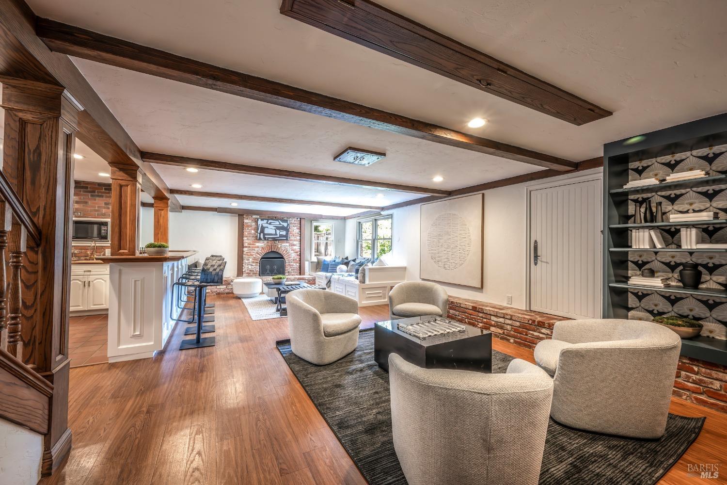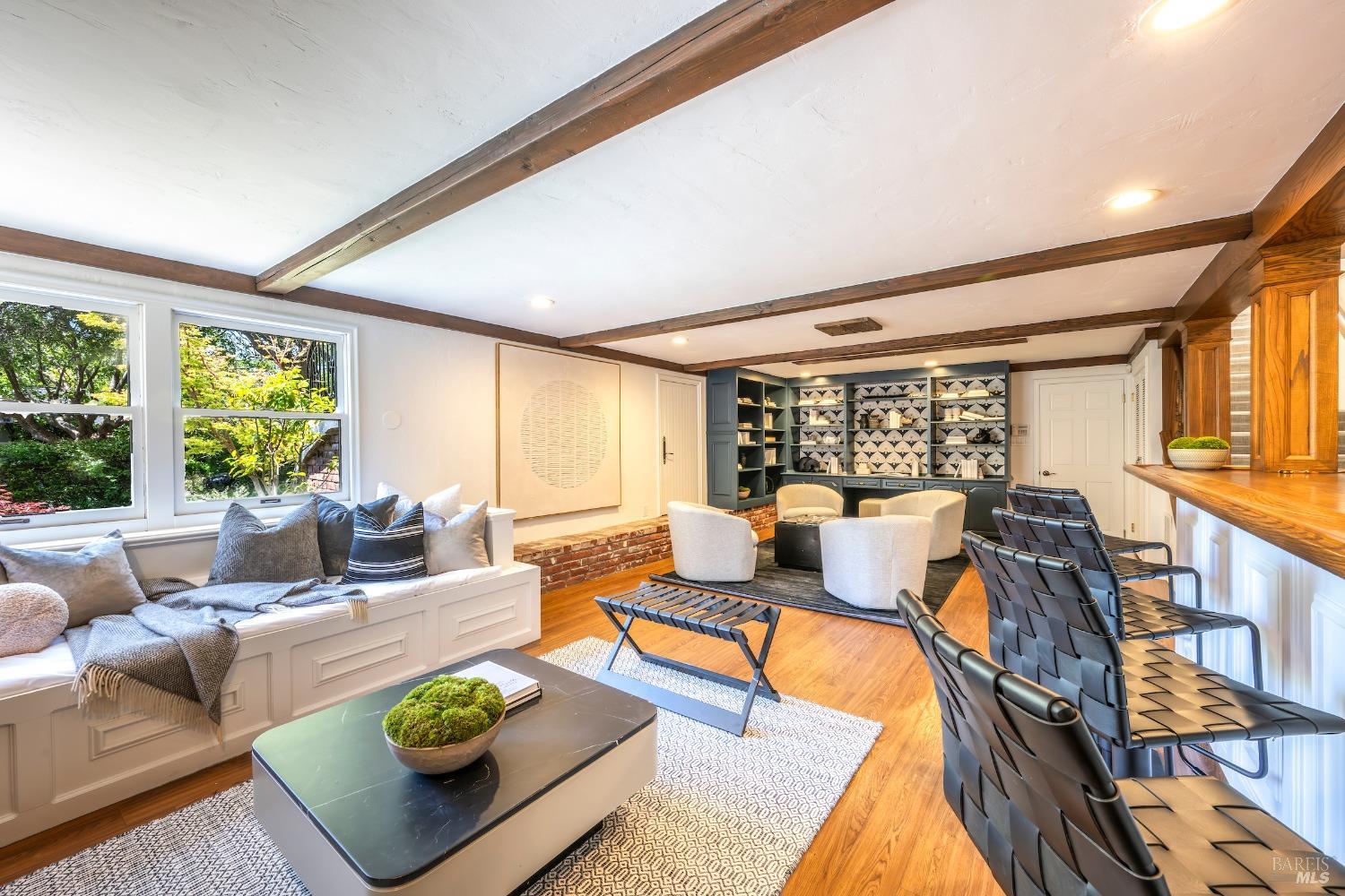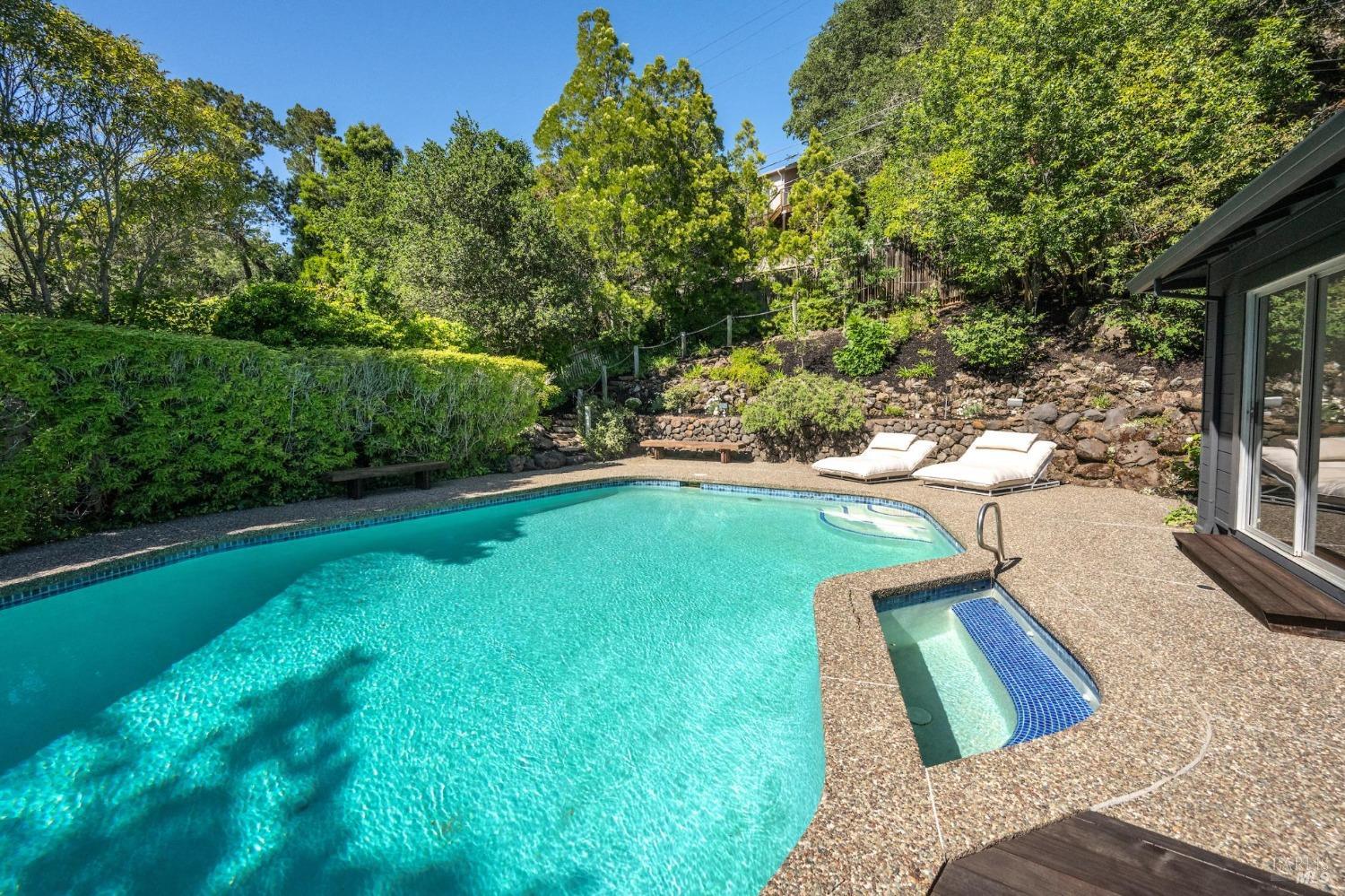 Unrivaled opportunity to acquire a fabulous home on Greenbrae's most desirable street in the coveted flats! This 4 bedroom residence lives almost entirely on one level with all 4 bedrooms, including the primary, situation on the upper level. Grand scale +-589 square foot lower level family room with full bar+kitchenette; ideal for hosting events, games, movies or potential live in. Resort living with most rooms opening to the level grounds, al fresco dining area and in-ground pool & spa! Mature plantings & trees with large level yard + waterfall + fire pit. Just two blocks from the many famed shops & restaurants in the Bon Air Shopping Center including Mollie Stones, Gotts, Sweet Green, Noah's Bagels with a very quick commute to downtown San Francisco. Award winning K-8th grade Kentfield School District.