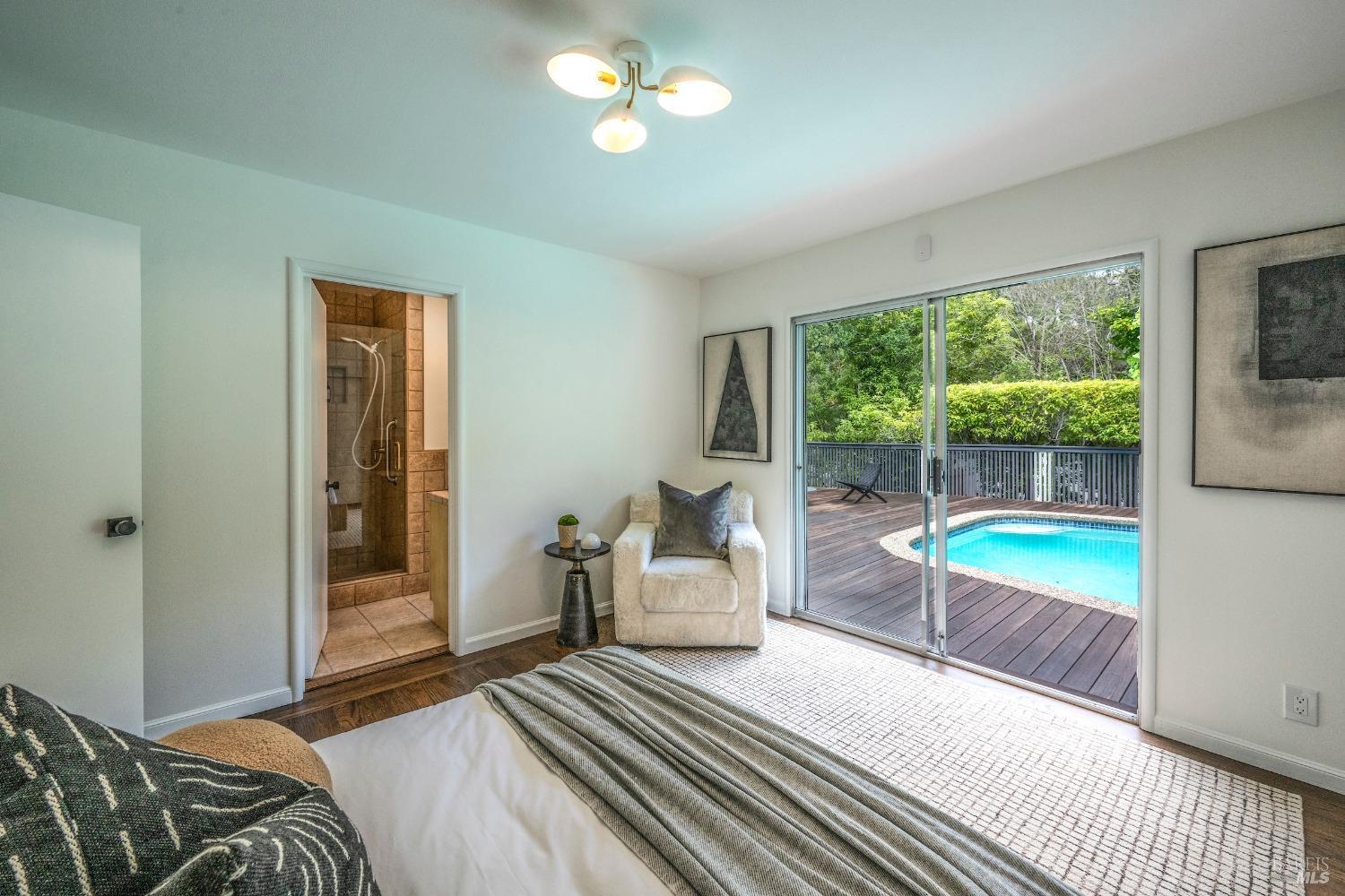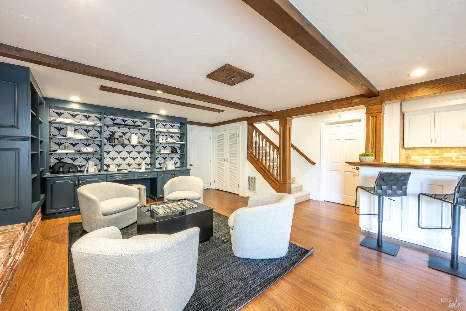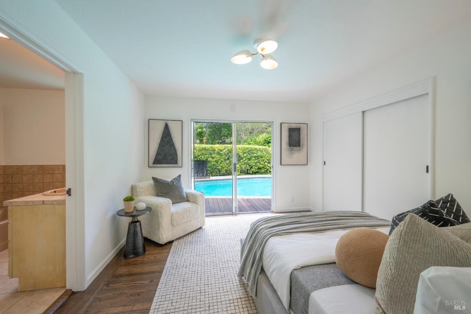 Unrivaled opportunity to acquire a fabulous home on Greenbrae's most desirable street in the coveted flats! This 4 bedroom residence lives almost entirely on one level with all 4 bedrooms, including the primary, situation on the upper level. Grand scale +-589 square foot lower level family room with full bar+kitchenette; ideal for hosting events, games, movies or potential live in. Resort living with most rooms opening to the level grounds, al fresco dining area and in-ground pool & spa! Mature plantings & trees with large level yard + waterfall + fire pit. Just two blocks from the many famed shops & restaurants in the Bon Air Shopping Center including Mollie Stones, Gotts, Sweet Green, Noah's Bagels with a very quick commute to downtown San Francisco. Award winning K-8th grade Kentfield School District.