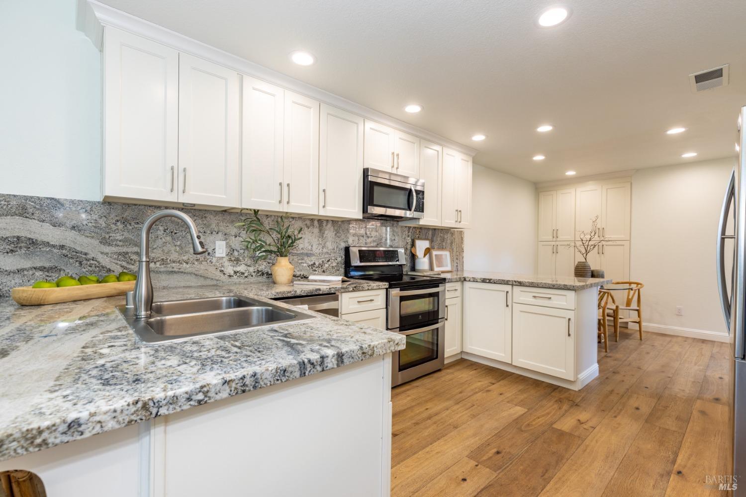 Relax and enjoy Lake Views and Resort Lifestyle living in the highly desirable, gated Canyon Lakes Community. This home features abundant natural light, an open floor plan and soaring high ceilings. The updated kitchen includes granite countertops, stainless steel appliances, newer LED lighting and flows to the living, dining and outdoor areas with lake views from over the sink! An entertainer's delight! The lower level features 3 bedrooms, 2 baths, laundry and a family room that flows to the oversized deck, which overlooks the lake and fountain. Wake up to stunning lake views in the large Primary bedroom suite which has private backyard access & includes a spa-like bathroom complete with double quartz countertop vanities, a walk-in shower, a jetted tub & large walk-in closet. The private court, at the end of a cul-de-sac location offers additional privacy. Adjacent paths lead you to all of the amenities including 4 pools, tennis courts, pickleball courts, hiking trails, and a golf course all surrounding the gorgeous iconic Canyon Lakes. The development has 24 hour security and is conveniently located near the San Ramon City Center, award winning SRVSD schools, shopping, restaurants, gym, parks, freeway access and so much more!