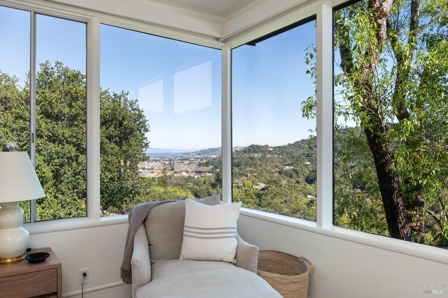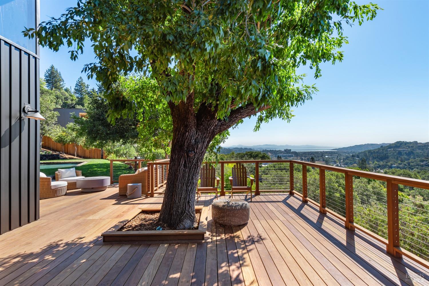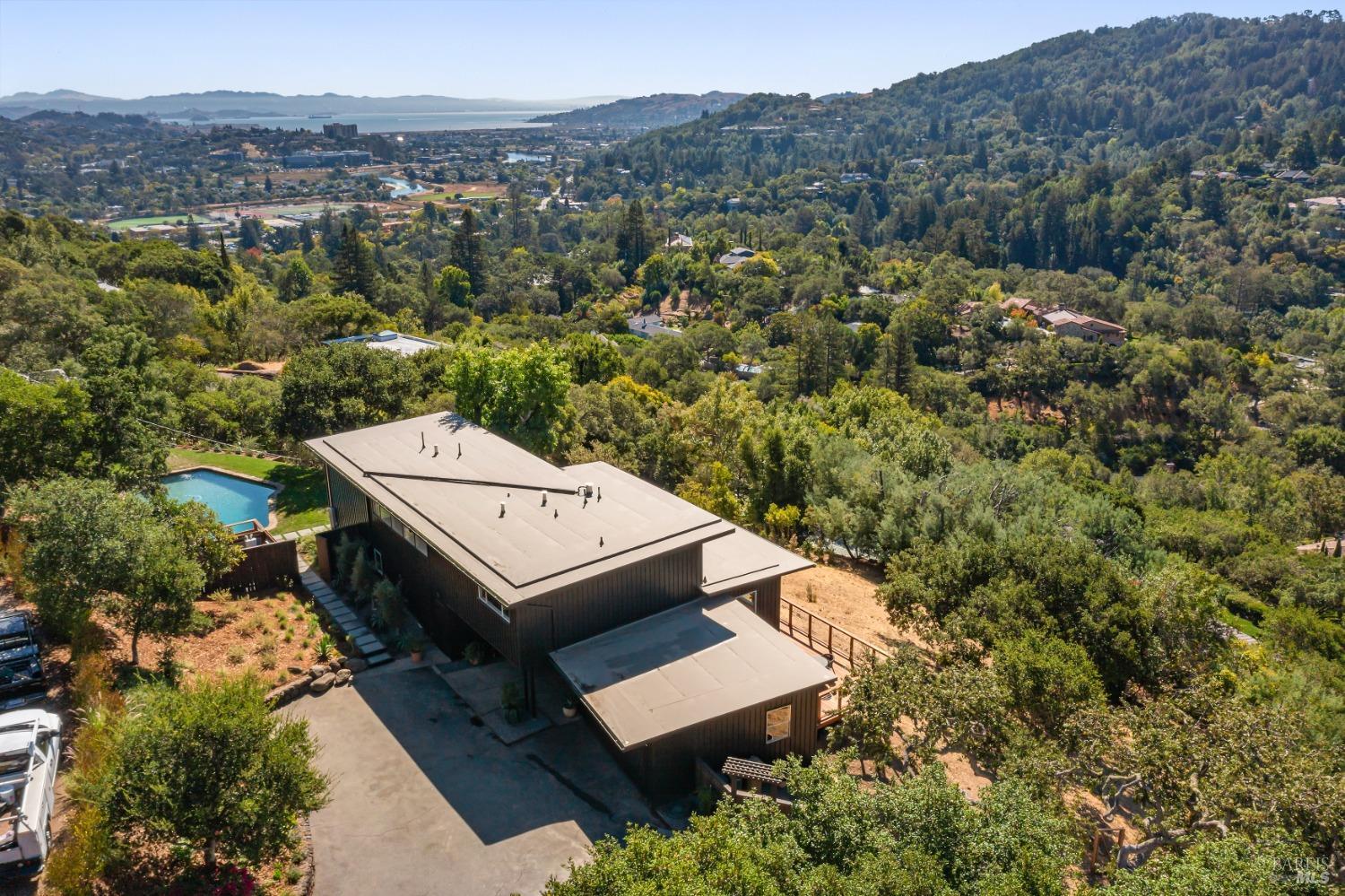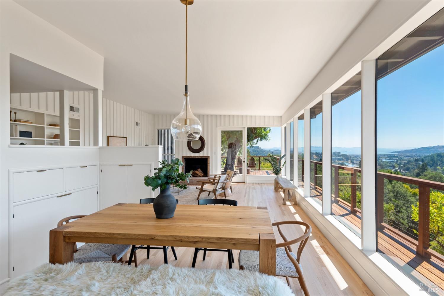 New look, new price! Discover a sanctuary of modern comfort and unparalleled beauty with panoramic views from the sparkling Bay to majestic Mount Tamalpais. Nestled on a sun-soaked, south-facing .95-acre lot, this 5bed/3ba early mid-century modern gem has been fully renovated and thoughtfully elevated, blending timeless design with today's luxury finishes. Designed for seamless indoor-outdoor living, featuring expansive picture windows and Fleetwood sliding doors opening to new Ipe decking with Feeney railings leading to a sparkling pool, lush lawns, gardens, and an invigorating outdoor shower. The glamorous kitchen features Soapstone & Boos butcher block countertops, artisanal fixtures, island seating, and high-end appliances exudes luxury and serenity. The spa like bathrooms are appointed with Heath ceramic tiles and modern fixtures. Recent smart home features include app controlled thermostats, lighting, pool equipment, irrigation, garage door and front doorbell. Located in Kent Woodlands, known for it's stunning natural beauty, serenity and ideal weather and surrounded by miles of open space lands, it's a haven for outdoor enthusiasts. Award-winning K-12 schools are nearby, along with neighborhood favorites; Woodlands Market, Guest House, and Rustic Bakery.