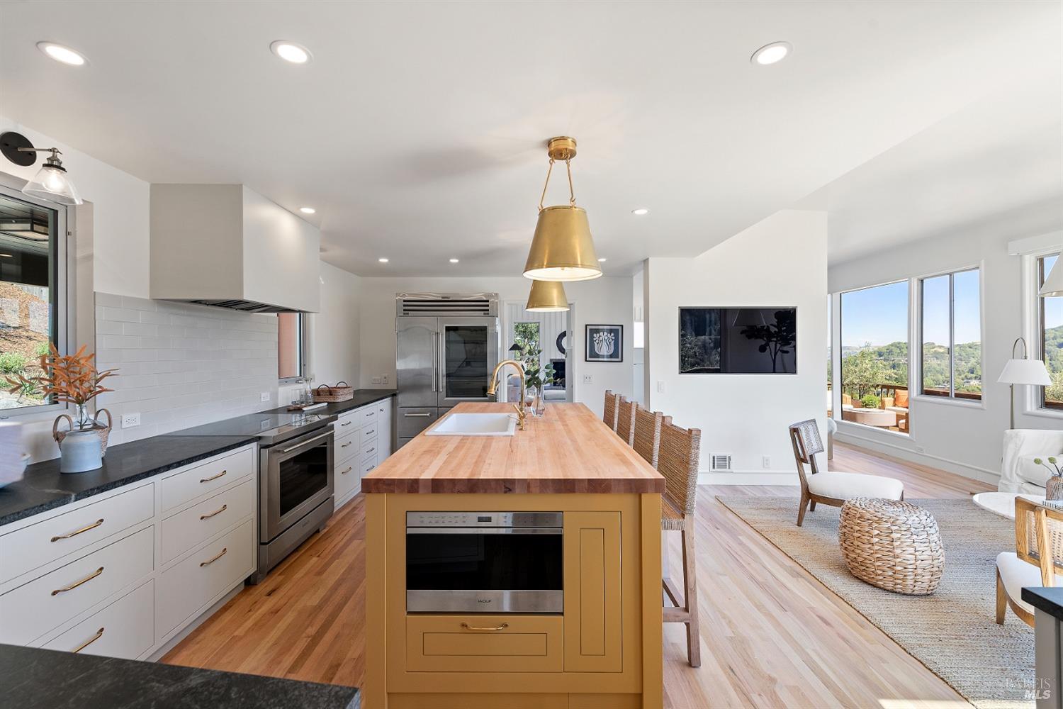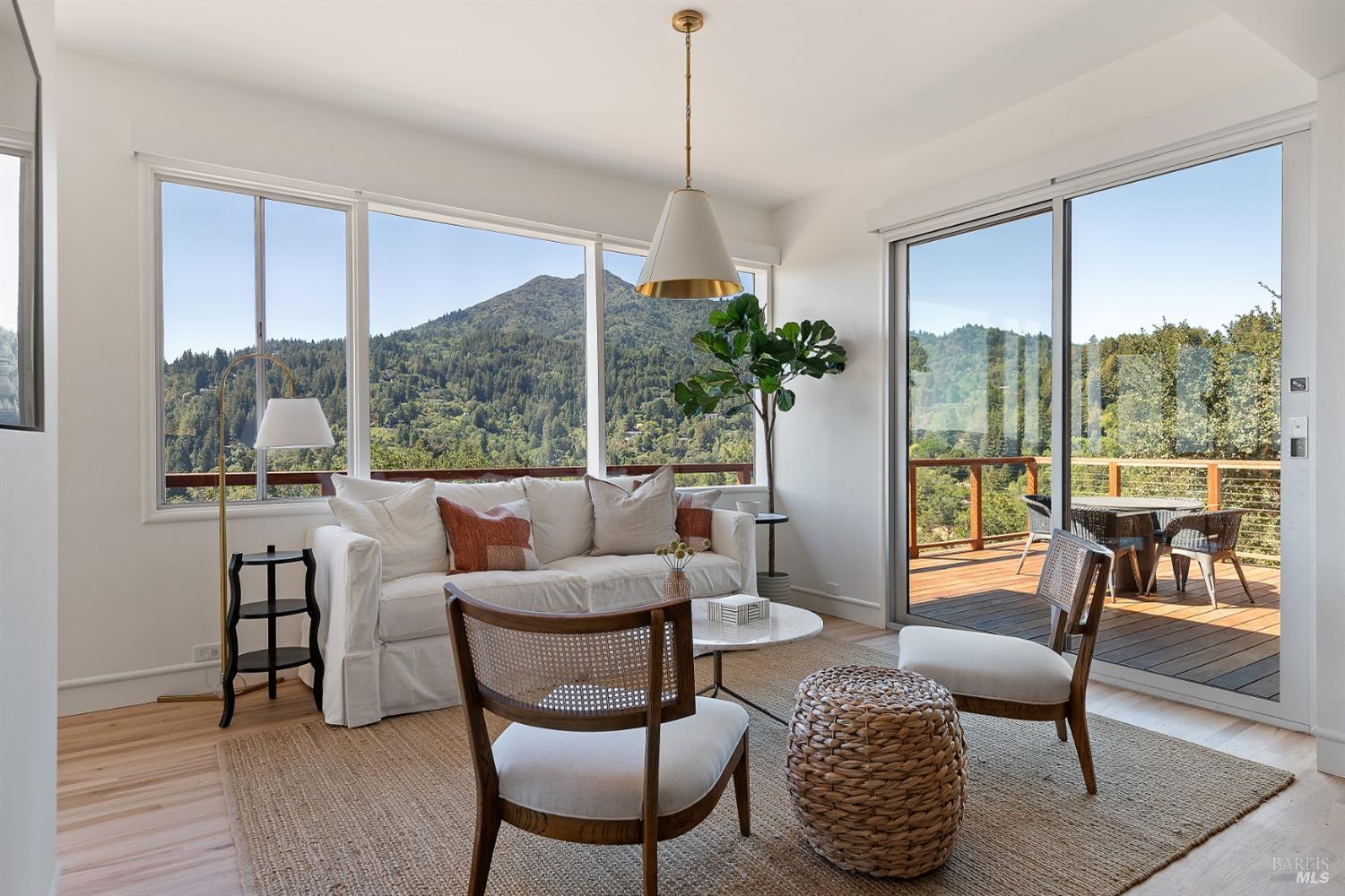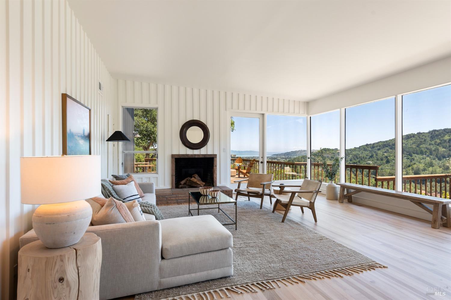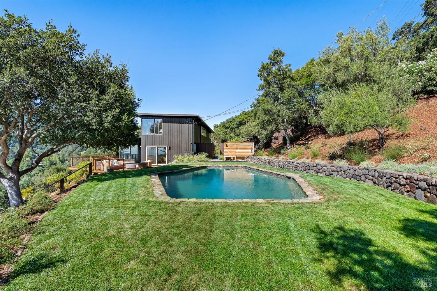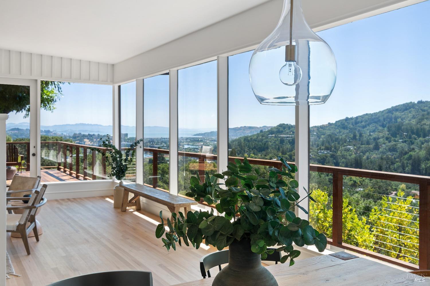 New look, new price! Discover a sanctuary of modern comfort and unparalleled beauty with panoramic views from the sparkling Bay to majestic Mount Tamalpais. Nestled on a sun-soaked, south-facing .95-acre lot, this 5bed/3ba early mid-century modern gem has been fully renovated and thoughtfully elevated, blending timeless design with today's luxury finishes. Designed for seamless indoor-outdoor living, featuring expansive picture windows and Fleetwood sliding doors opening to new Ipe decking with Feeney railings leading to a sparkling pool, lush lawns, gardens, and an invigorating outdoor shower. The glamorous kitchen features Soapstone & Boos butcher block countertops, artisanal fixtures, island seating, and high-end appliances exudes luxury and serenity. The spa like bathrooms are appointed with Heath ceramic tiles and modern fixtures. Recent smart home features include app controlled thermostats, lighting, pool equipment, irrigation, garage door and front doorbell. Located in Kent Woodlands, known for it's stunning natural beauty, serenity and ideal weather and surrounded by miles of open space lands, it's a haven for outdoor enthusiasts. Award-winning K-12 schools are nearby, along with neighborhood favorites; Woodlands Market, Guest House, and Rustic Bakery.