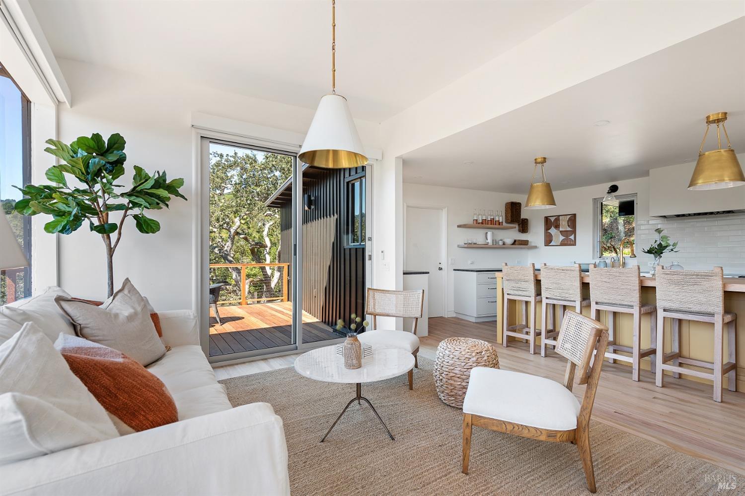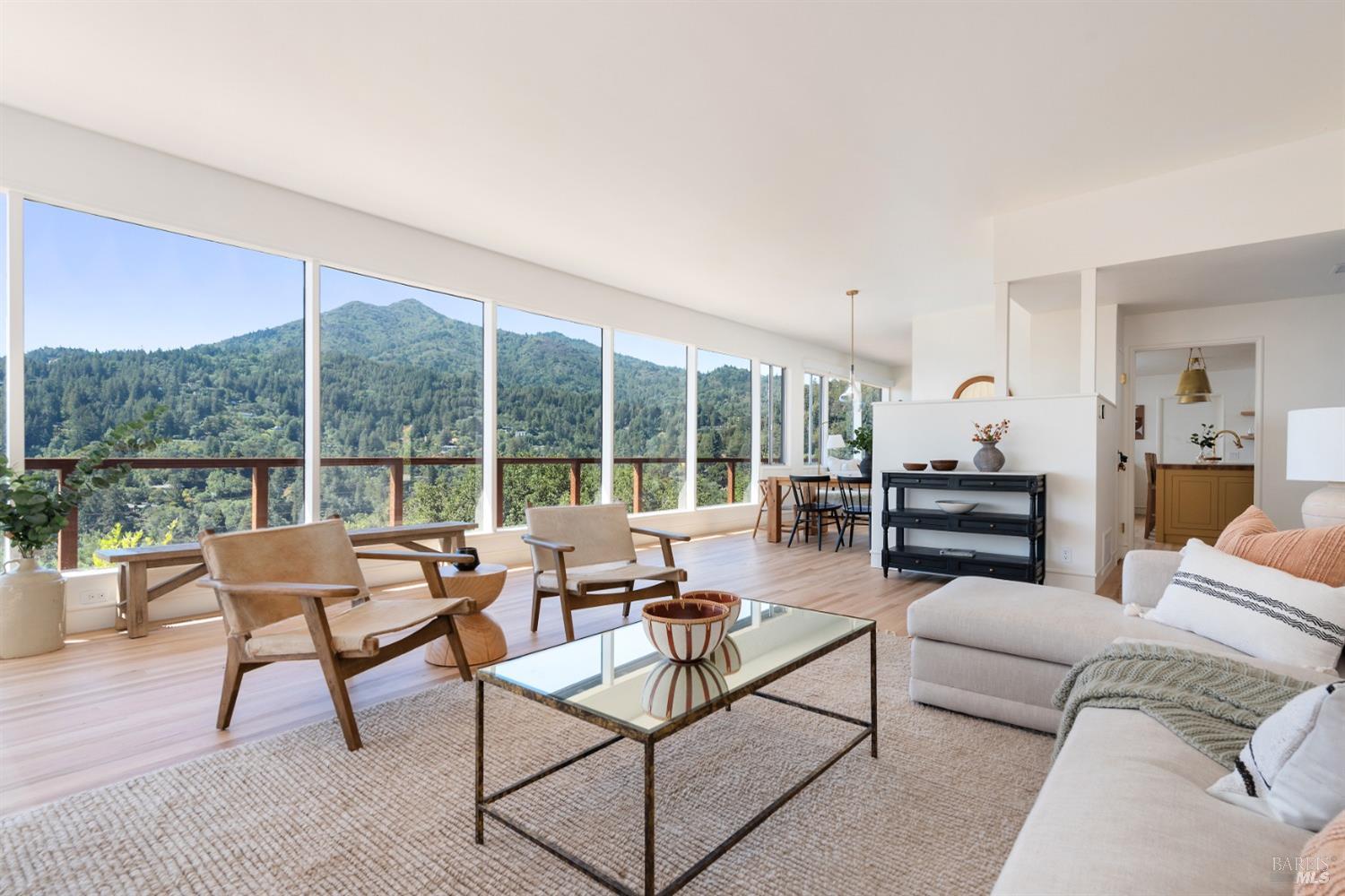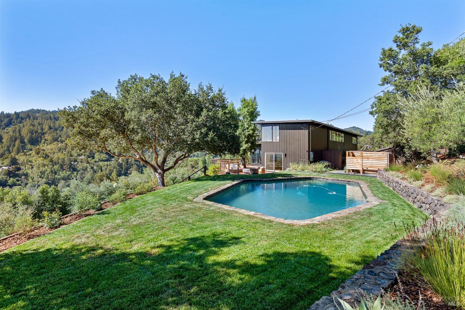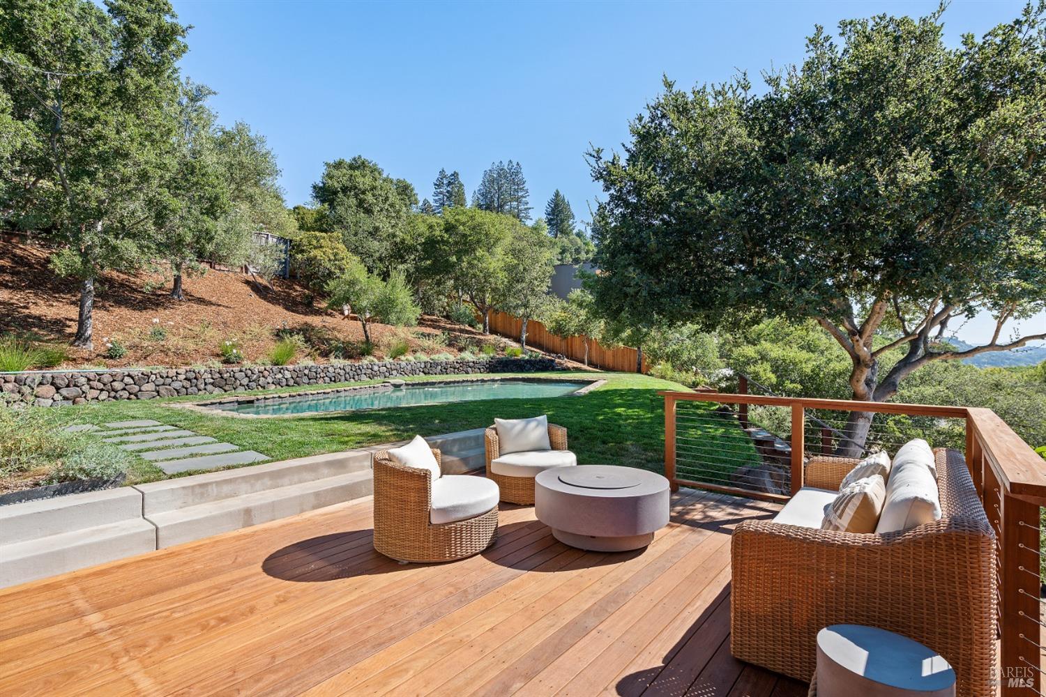 New look, new price! Discover a sanctuary of modern comfort and unparalleled beauty with panoramic views from the sparkling Bay to majestic Mount Tamalpais. Nestled on a sun-soaked, south-facing .95-acre lot, this 5bed/3ba early mid-century modern gem has been fully renovated and thoughtfully elevated, blending timeless design with today's luxury finishes. Designed for seamless indoor-outdoor living, featuring expansive picture windows and Fleetwood sliding doors opening to new Ipe decking with Feeney railings leading to a sparkling pool, lush lawns, gardens, and an invigorating outdoor shower. The glamorous kitchen features Soapstone & Boos butcher block countertops, artisanal fixtures, island seating, and high-end appliances exudes luxury and serenity. The spa like bathrooms are appointed with Heath ceramic tiles and modern fixtures. Recent smart home features include app controlled thermostats, lighting, pool equipment, irrigation, garage door and front doorbell. Located in Kent Woodlands, known for it's stunning natural beauty, serenity and ideal weather and surrounded by miles of open space lands, it's a haven for outdoor enthusiasts. Award-winning K-12 schools are nearby, along with neighborhood favorites; Woodlands Market, Guest House, and Rustic Bakery.