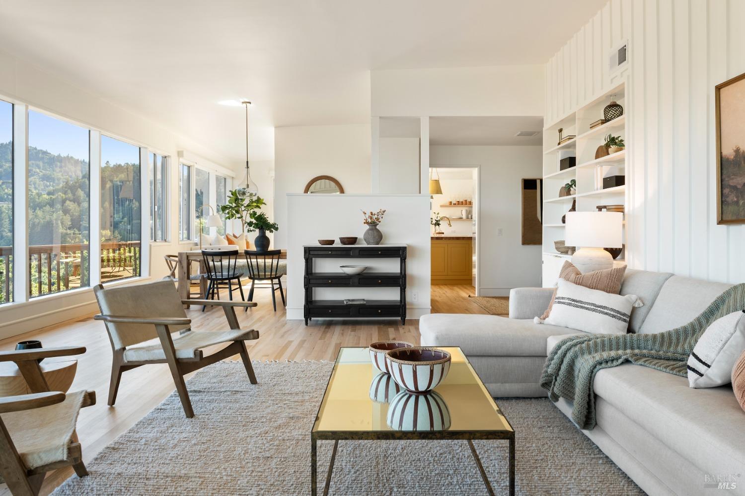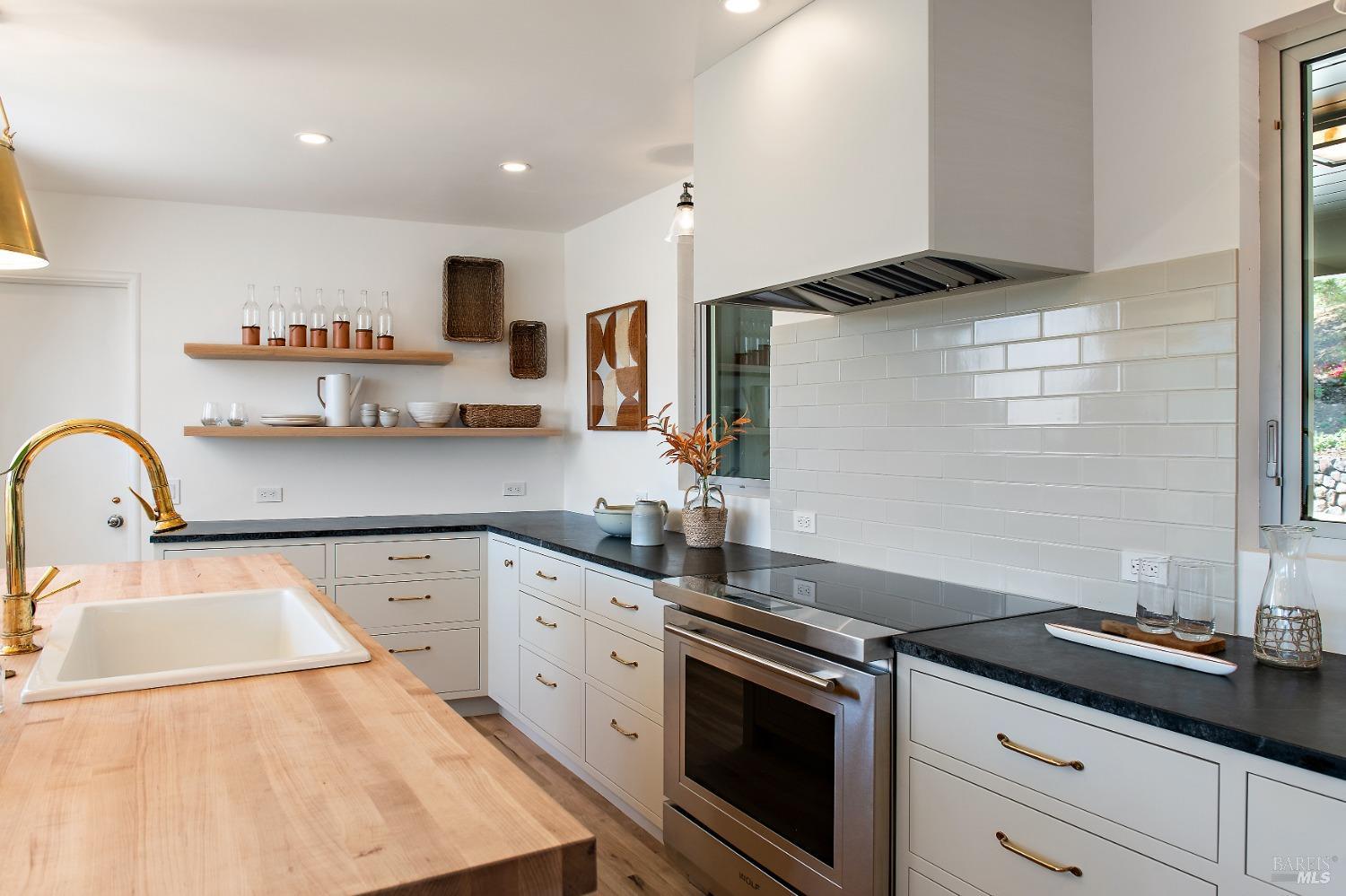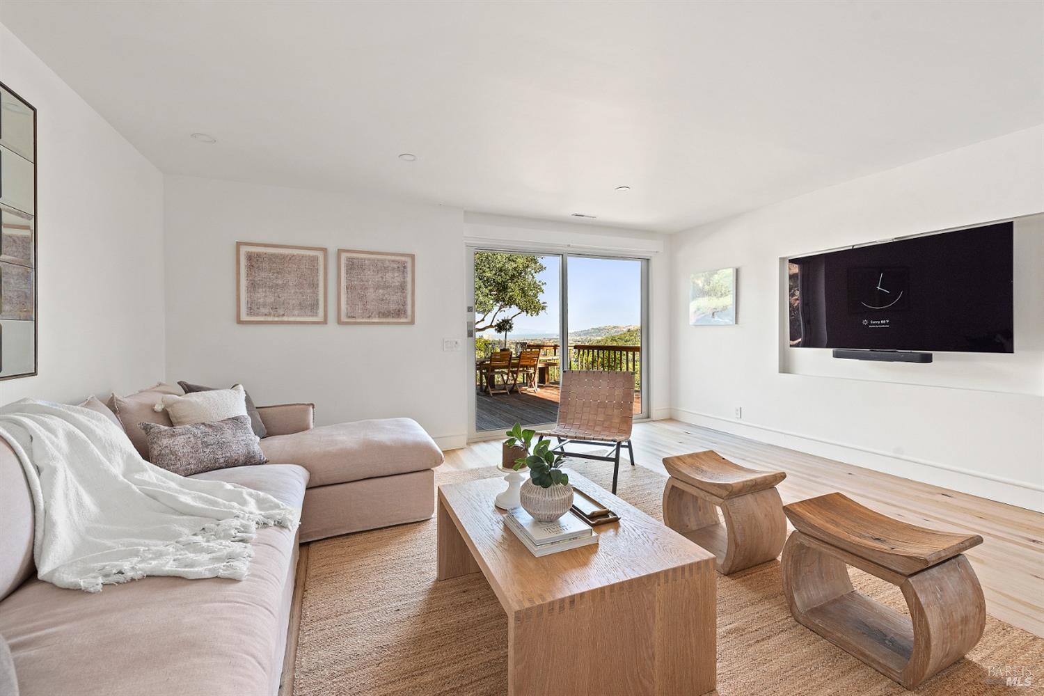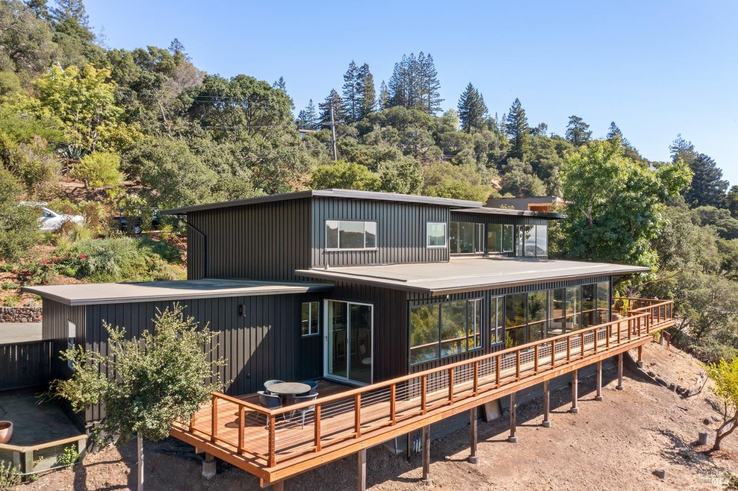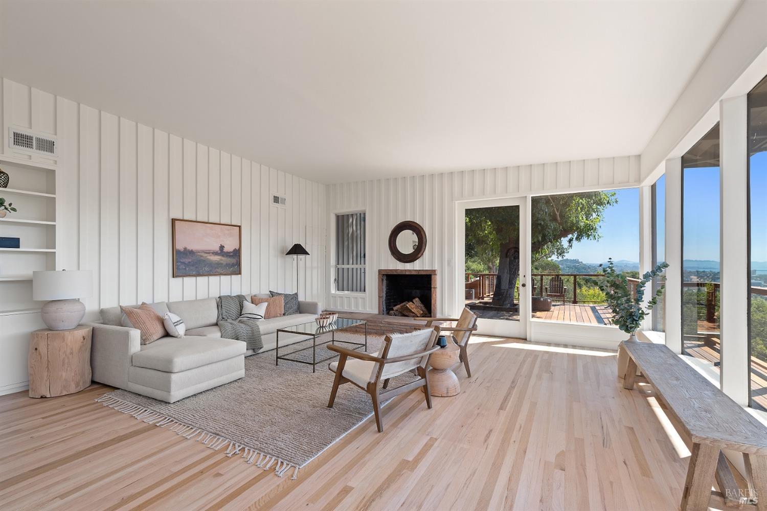 New look, new price! Discover a sanctuary of modern comfort and unparalleled beauty with panoramic views from the sparkling Bay to majestic Mount Tamalpais. Nestled on a sun-soaked, south-facing .95-acre lot, this 5bed/3ba early mid-century modern gem has been fully renovated and thoughtfully elevated, blending timeless design with today's luxury finishes. Designed for seamless indoor-outdoor living, featuring expansive picture windows and Fleetwood sliding doors opening to new Ipe decking with Feeney railings leading to a sparkling pool, lush lawns, gardens, and an invigorating outdoor shower. The glamorous kitchen features Soapstone & Boos butcher block countertops, artisanal fixtures, island seating, and high-end appliances exudes luxury and serenity. The spa like bathrooms are appointed with Heath ceramic tiles and modern fixtures. Recent smart home features include app controlled thermostats, lighting, pool equipment, irrigation, garage door and front doorbell. Located in Kent Woodlands, known for it's stunning natural beauty, serenity and ideal weather and surrounded by miles of open space lands, it's a haven for outdoor enthusiasts. Award-winning K-12 schools are nearby, along with neighborhood favorites; Woodlands Market, Guest House, and Rustic Bakery.