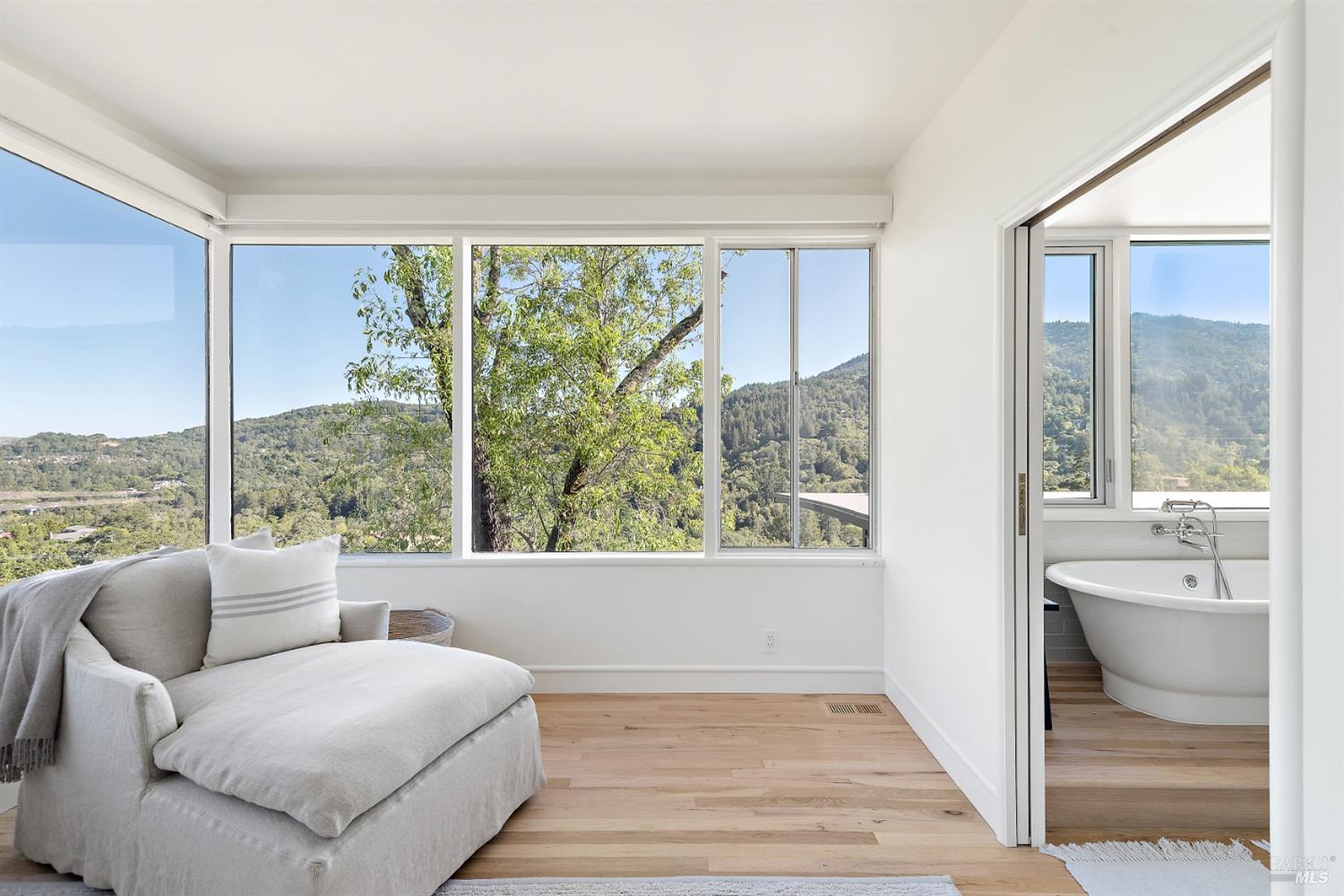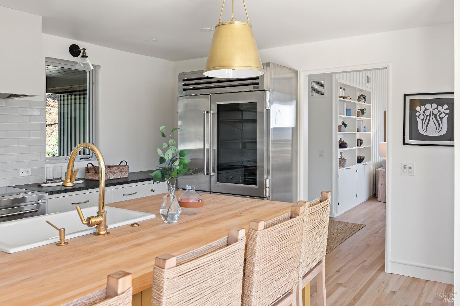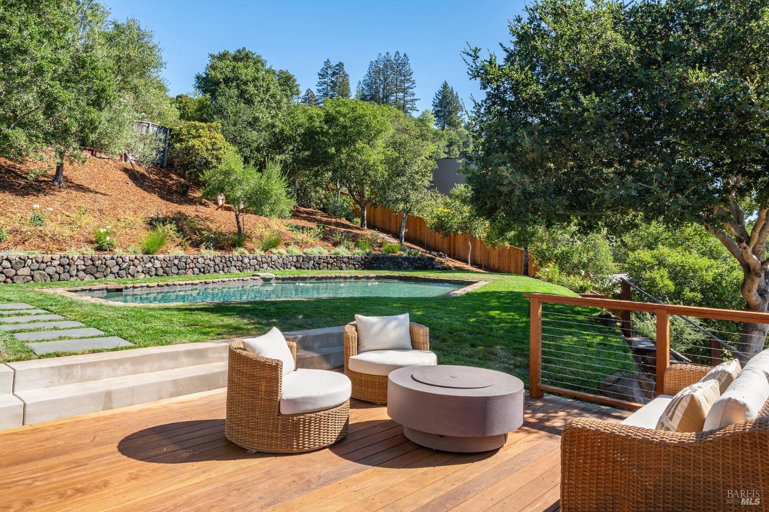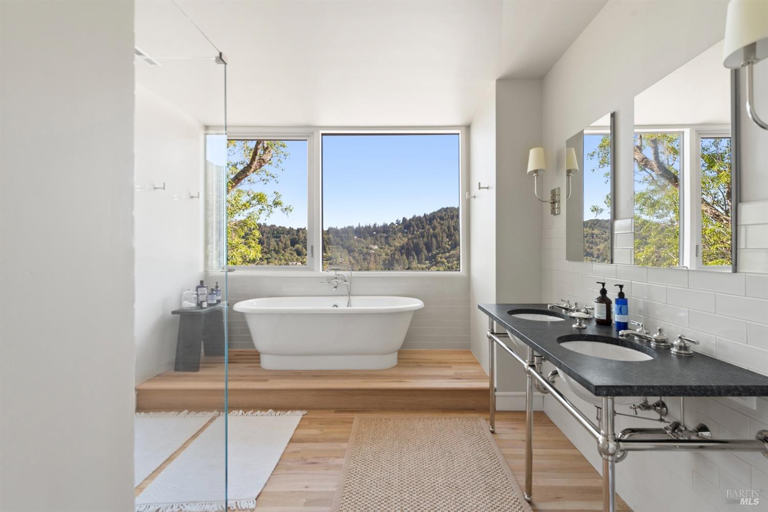 New look, new price! Discover a sanctuary of modern comfort and unparalleled beauty with panoramic views from the sparkling Bay to majestic Mount Tamalpais. Nestled on a sun-soaked, south-facing .95-acre lot, this 5bed/3ba early mid-century modern gem has been fully renovated and thoughtfully elevated, blending timeless design with today's luxury finishes. Designed for seamless indoor-outdoor living, featuring expansive picture windows and Fleetwood sliding doors opening to new Ipe decking with Feeney railings leading to a sparkling pool, lush lawns, gardens, and an invigorating outdoor shower. The glamorous kitchen features Soapstone & Boos butcher block countertops, artisanal fixtures, island seating, and high-end appliances exudes luxury and serenity. The spa like bathrooms are appointed with Heath ceramic tiles and modern fixtures. Recent smart home features include app controlled thermostats, lighting, pool equipment, irrigation, garage door and front doorbell. Located in Kent Woodlands, known for it's stunning natural beauty, serenity and ideal weather and surrounded by miles of open space lands, it's a haven for outdoor enthusiasts. Award-winning K-12 schools are nearby, along with neighborhood favorites; Woodlands Market, Guest House, and Rustic Bakery.