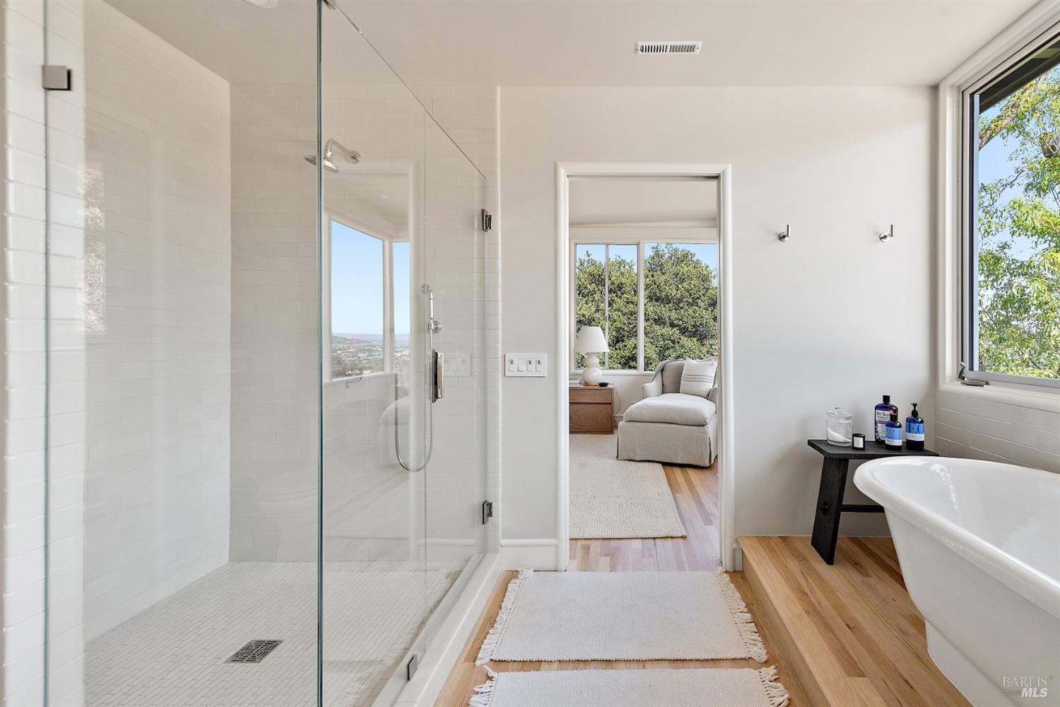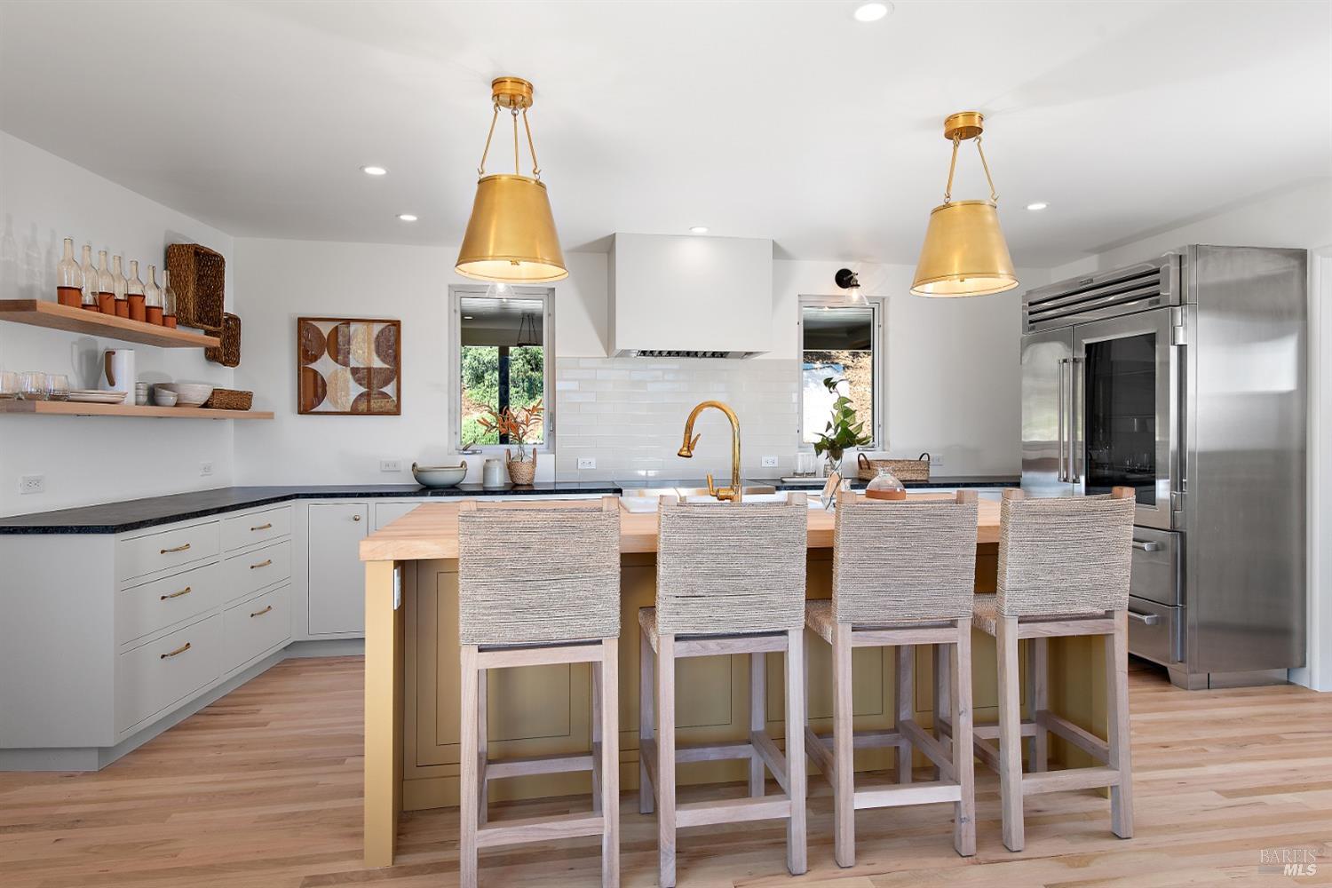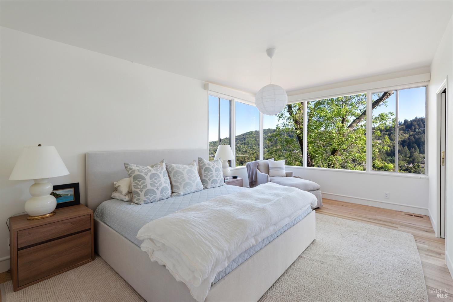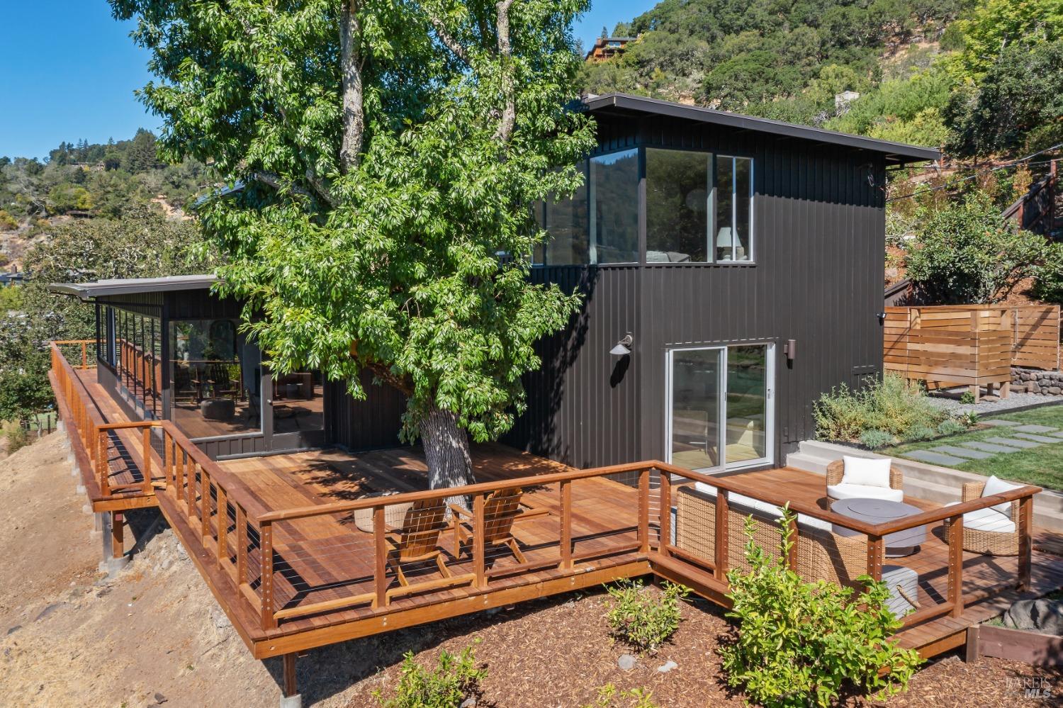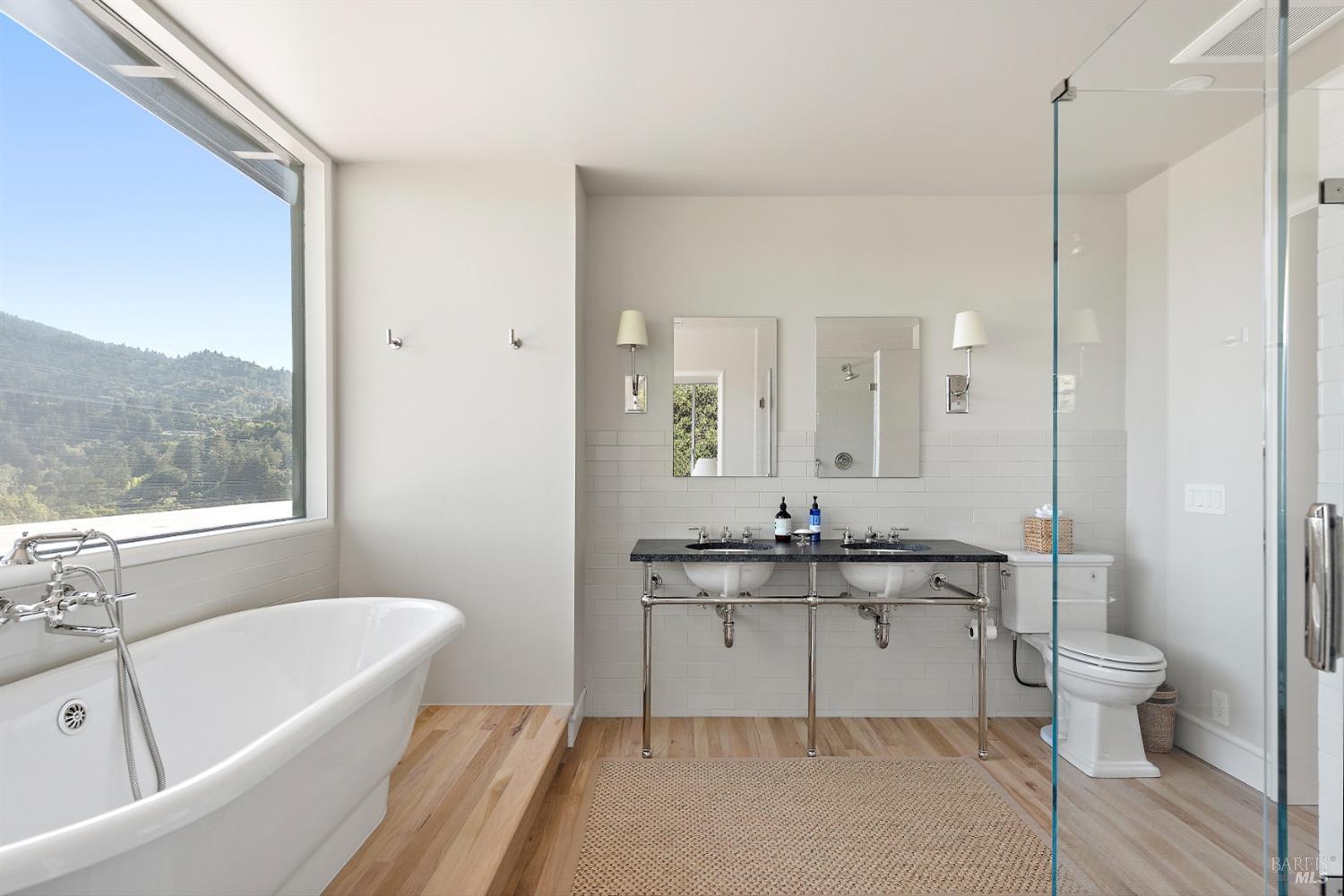 New look, new price! Discover a sanctuary of modern comfort and unparalleled beauty with panoramic views from the sparkling Bay to majestic Mount Tamalpais. Nestled on a sun-soaked, south-facing .95-acre lot, this 5bed/3ba early mid-century modern gem has been fully renovated and thoughtfully elevated, blending timeless design with today's luxury finishes. Designed for seamless indoor-outdoor living, featuring expansive picture windows and Fleetwood sliding doors opening to new Ipe decking with Feeney railings leading to a sparkling pool, lush lawns, gardens, and an invigorating outdoor shower. The glamorous kitchen features Soapstone & Boos butcher block countertops, artisanal fixtures, island seating, and high-end appliances exudes luxury and serenity. The spa like bathrooms are appointed with Heath ceramic tiles and modern fixtures. Recent smart home features include app controlled thermostats, lighting, pool equipment, irrigation, garage door and front doorbell. Located in Kent Woodlands, known for it's stunning natural beauty, serenity and ideal weather and surrounded by miles of open space lands, it's a haven for outdoor enthusiasts. Award-winning K-12 schools are nearby, along with neighborhood favorites; Woodlands Market, Guest House, and Rustic Bakery.