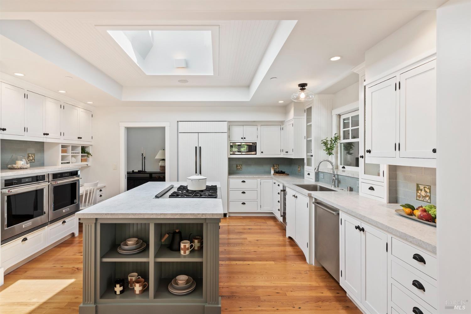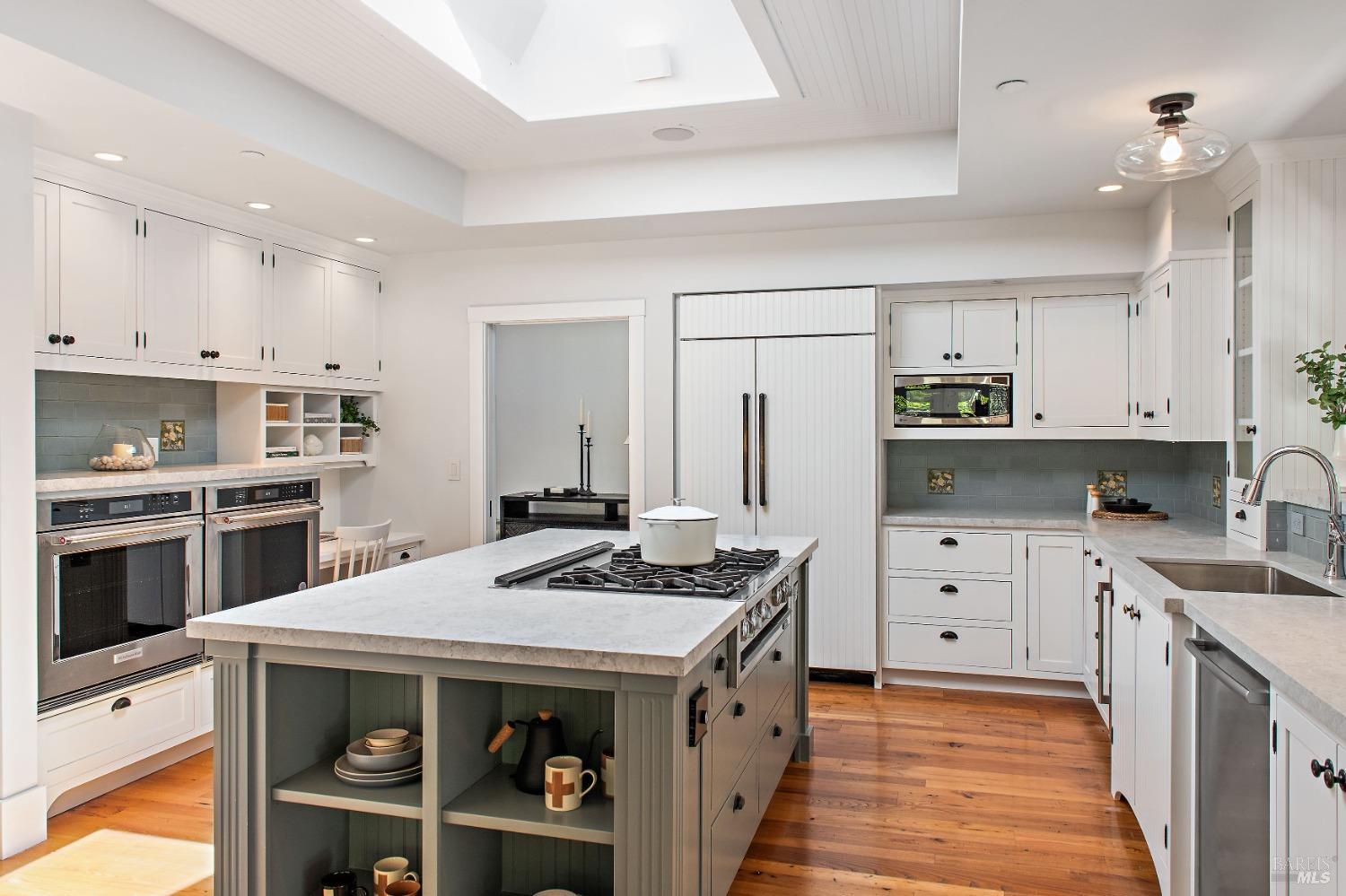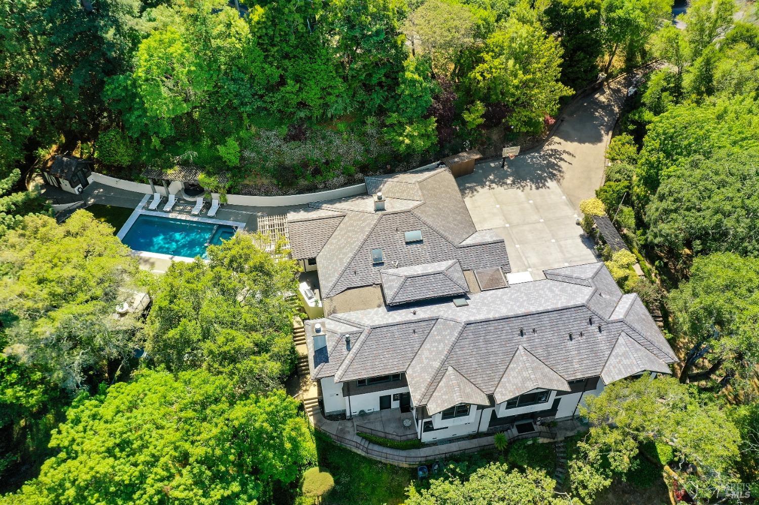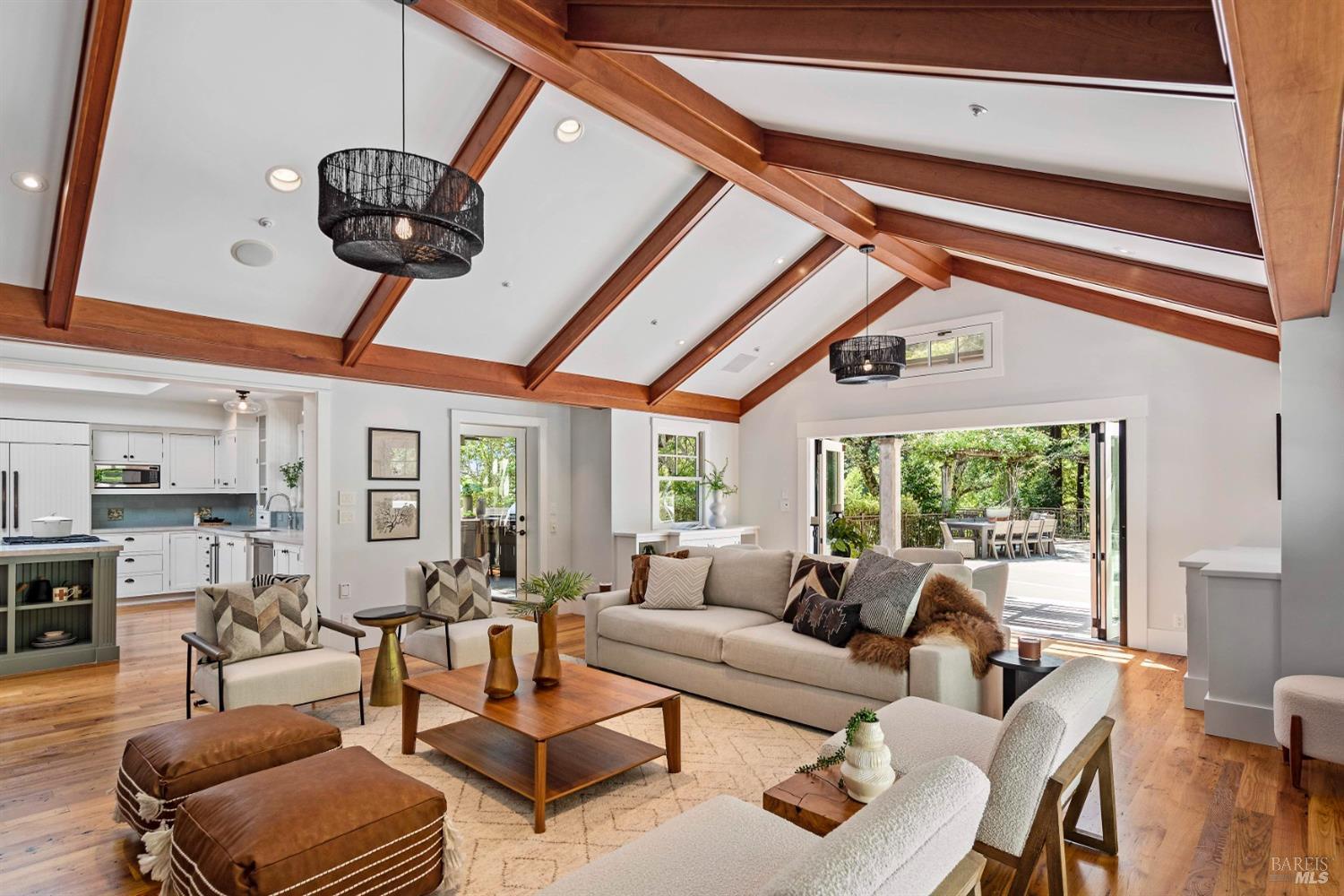 This custom-built home by Rempe Construction, renowned for superior quality and attention to detail, is an exquisite example of refined elegance. A grand, formal foyer with high ceilings and beautiful crown moldings welcomes you. Large-scale rooms and elegant finishes, including crown moldings, wainscoting, and custom-built cabinetry, reflect artistry in every corner. 150-year-old Chestnut floors convey a sense of rich history and enduring beauty, adding warmth and character throughout the main living areas. The kitchen, bright and recently updated with quartz counters and a large central island, opens directly to a dramatic great room with vaulted, exposed beam ceilings, Dolby surround sound system, and a new window wall that opens directly to the spectacular recently renovated backyard. Surrounded by lush, mature landscaping, the serene and private backyard includes a solar-heated pool with spa, a soothing fountain, and a fully outfitted outdoor kitchen. A pool pergola with outdoor heating completes the space, making it perfect for entertaining or relaxing. There are 5 spacious bedrooms (4 Ensuite), an exercise room, laundry room, whole house generator, fully fenced with driveway gate.