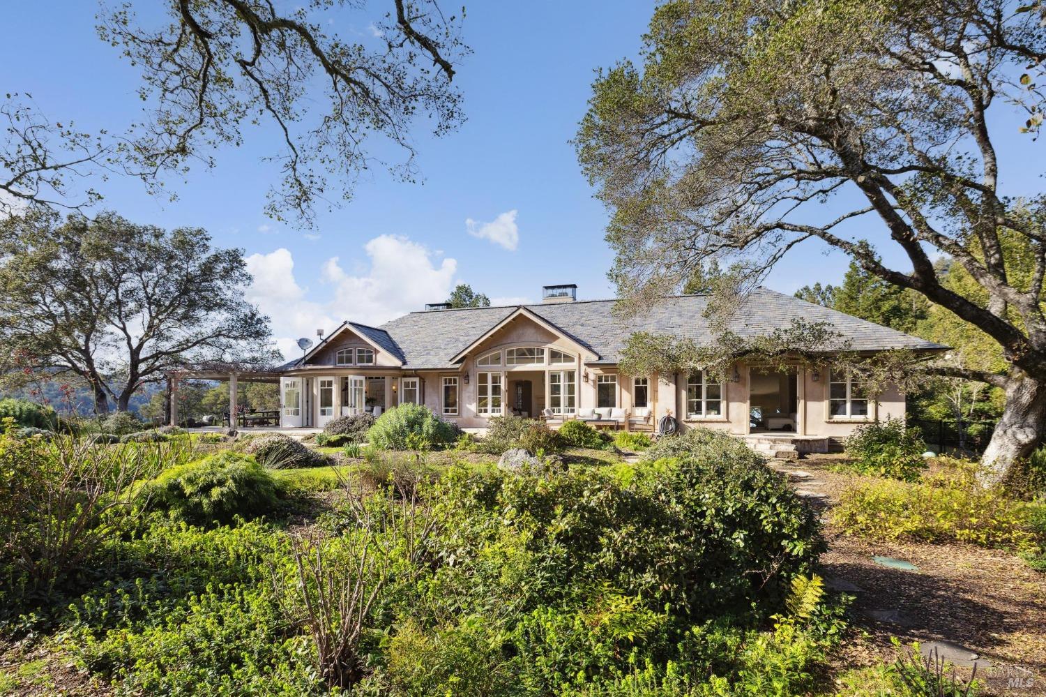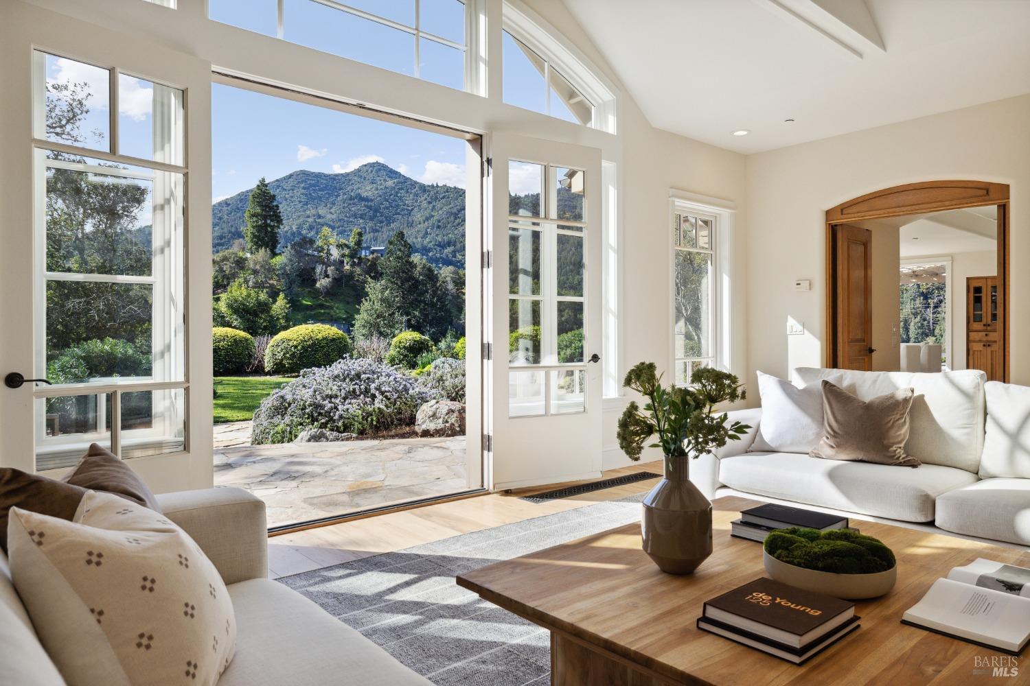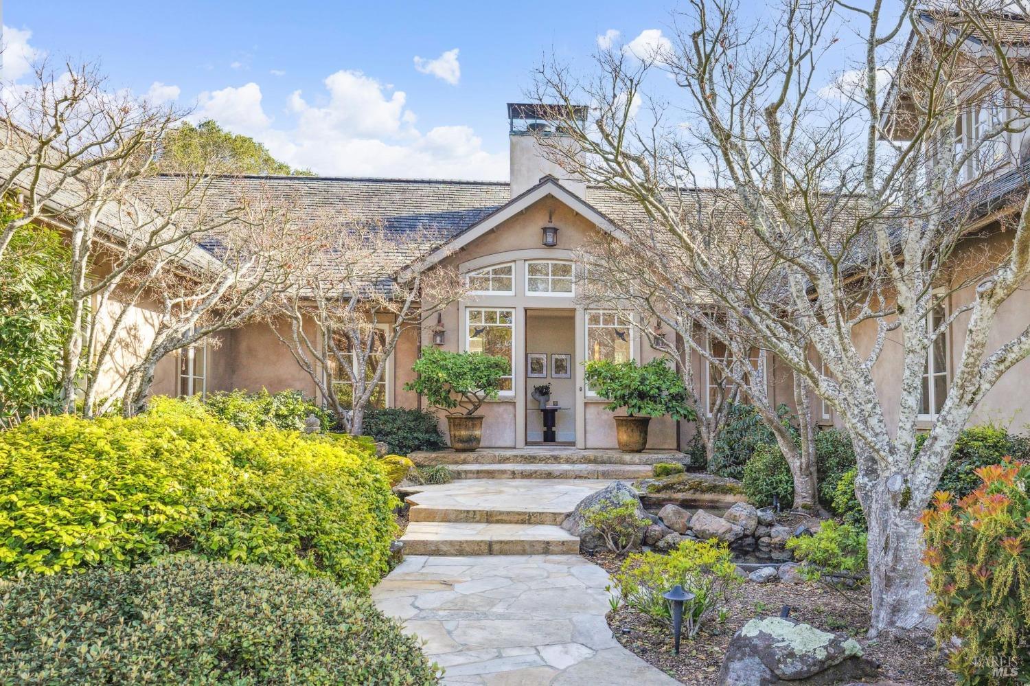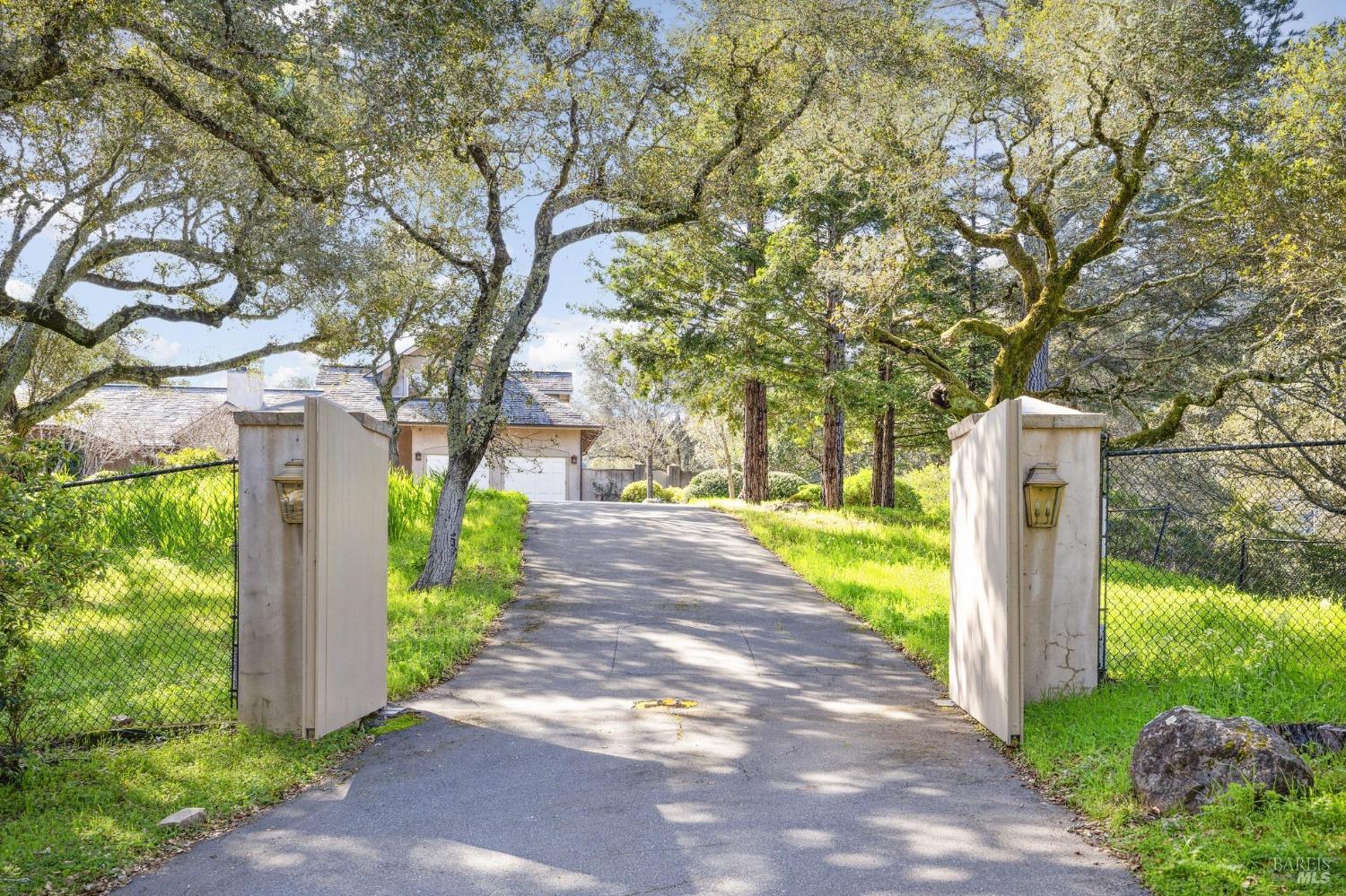 A spectacular view of Mt. Tamalpais sets the stage for this extraordinary, custom-built home in highly desirable Kent Woodlands. Private and ideally situated on 3 acres, this sun-filled home offers a predominantly single-story floor plan, superb scale, and seamless integration between indoor and outdoor living spaces. Step inside and you're greeted with gorgeous light that flows throughout the house thanks to the abundant windows and skylights. Throughout the day, Mt. Tam provides for a captivating, ever-changing backdrop as the sun and fog interplay, providing panoramic, awe-inspiring scenes. The landscaped and natural grounds are adorned with mature oak trees, vibrant lavender, and fragrant roses. There is even ample room for a generously sized pool. This stunning, gated home offers a rare combination of tranquility combined with the convenience of easy access to shops, and cafes, numerous top-rated schools, and nearby hiking and biking trails leading to Phoenix Lake, Larkspur, Mill Valley, to the top of Mt. Tam, and beyond!