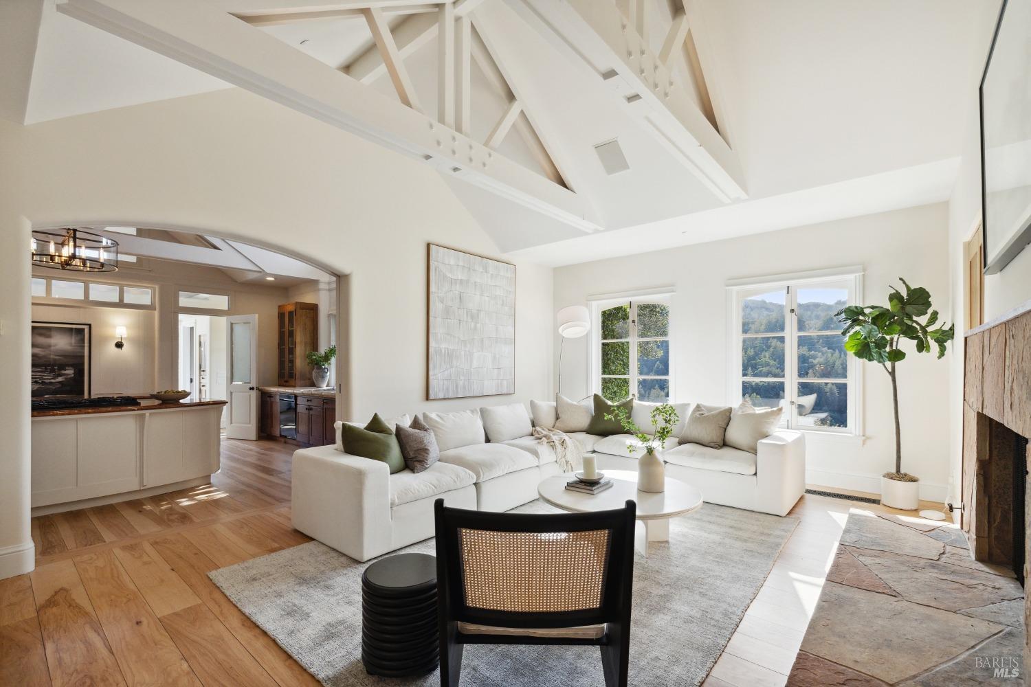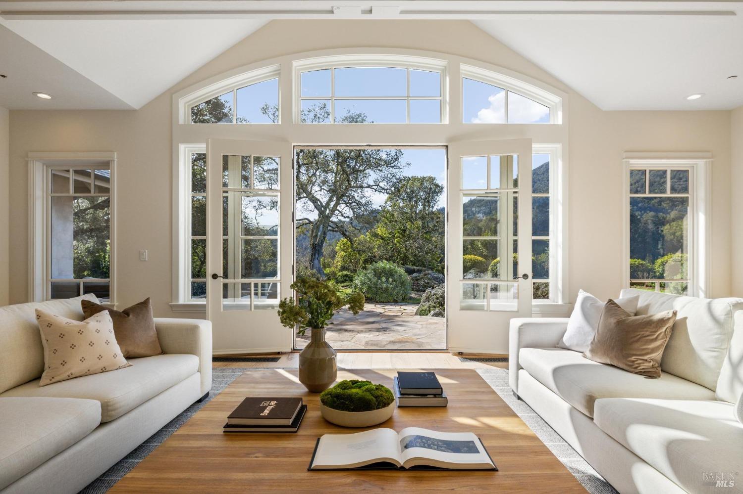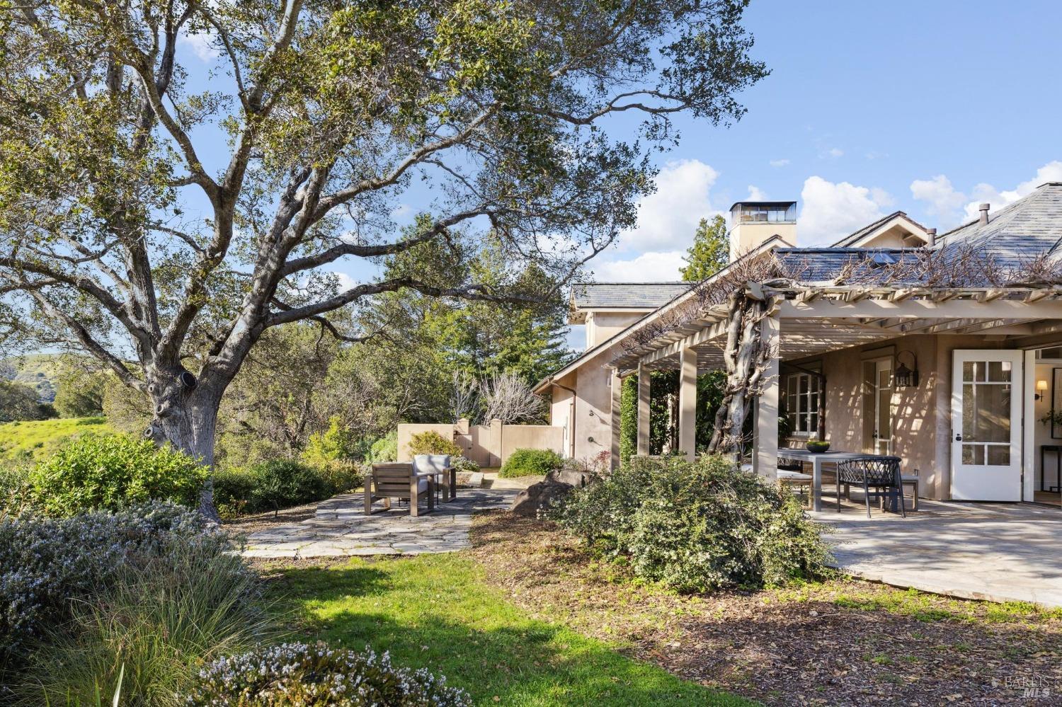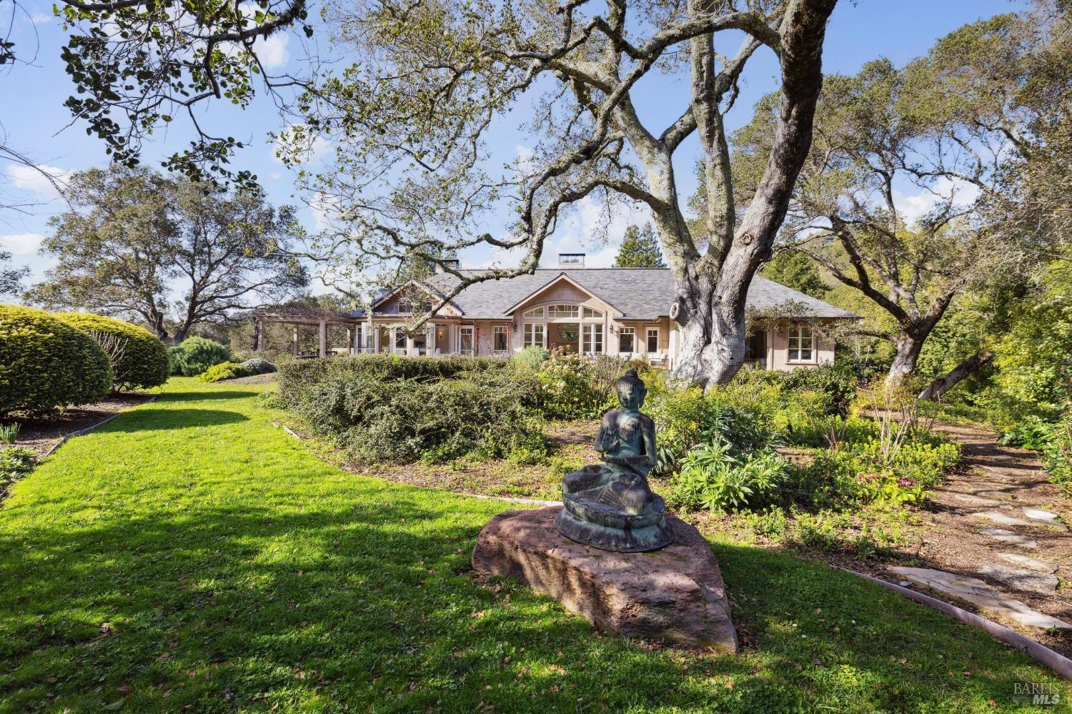 A spectacular view of Mt. Tamalpais sets the stage for this extraordinary, custom-built home in highly desirable Kent Woodlands. Private and ideally situated on 3 acres, this sun-filled home offers a predominantly single-story floor plan, superb scale, and seamless integration between indoor and outdoor living spaces. Step inside and you're greeted with gorgeous light that flows throughout the house thanks to the abundant windows and skylights. Throughout the day, Mt. Tam provides for a captivating, ever-changing backdrop as the sun and fog interplay, providing panoramic, awe-inspiring scenes. The landscaped and natural grounds are adorned with mature oak trees, vibrant lavender, and fragrant roses. There is even ample room for a generously sized pool. This stunning, gated home offers a rare combination of tranquility combined with the convenience of easy access to shops, and cafes, numerous top-rated schools, and nearby hiking and biking trails leading to Phoenix Lake, Larkspur, Mill Valley, to the top of Mt. Tam, and beyond!