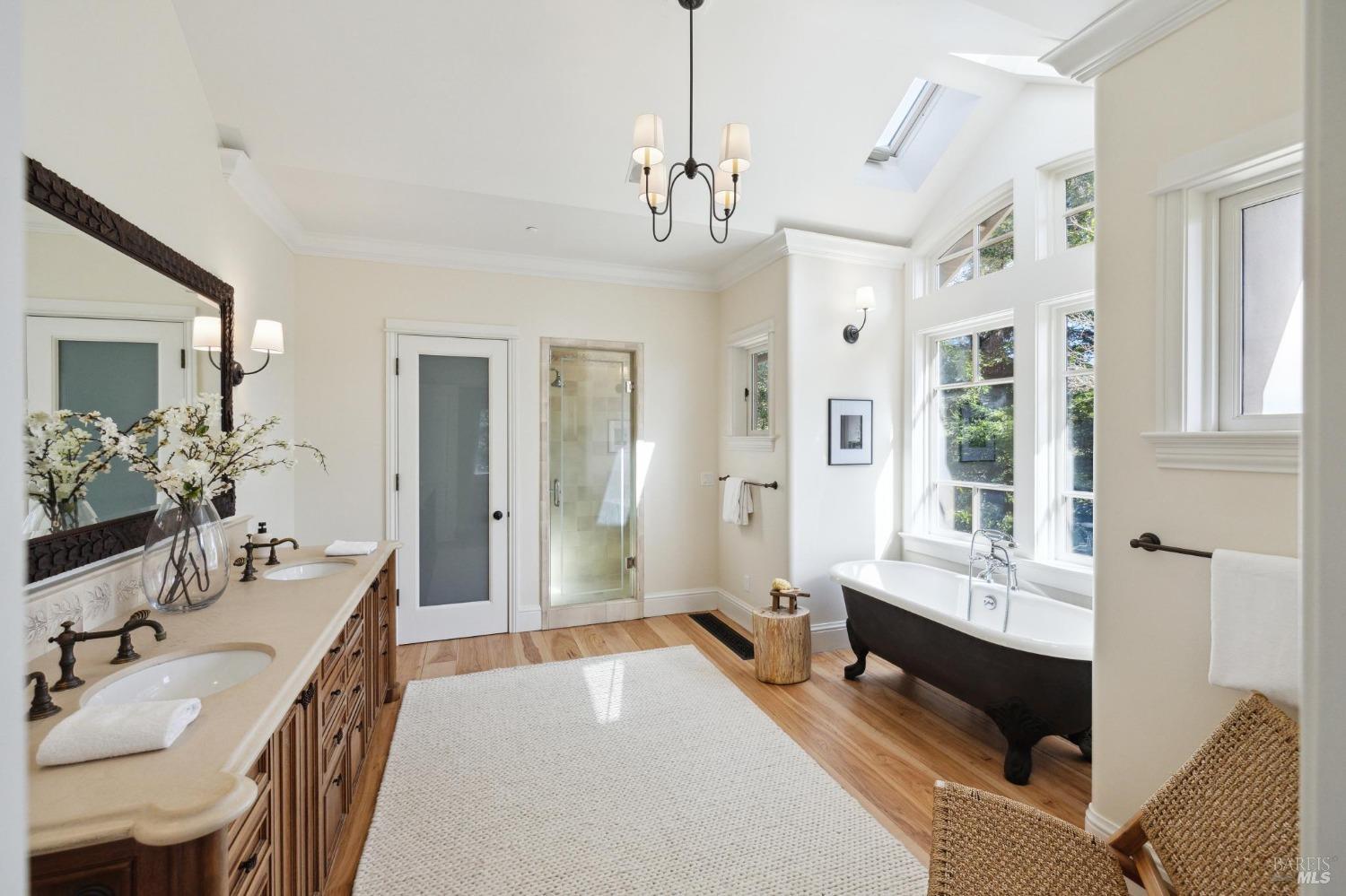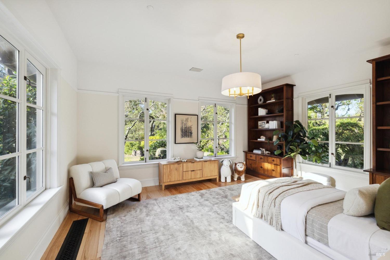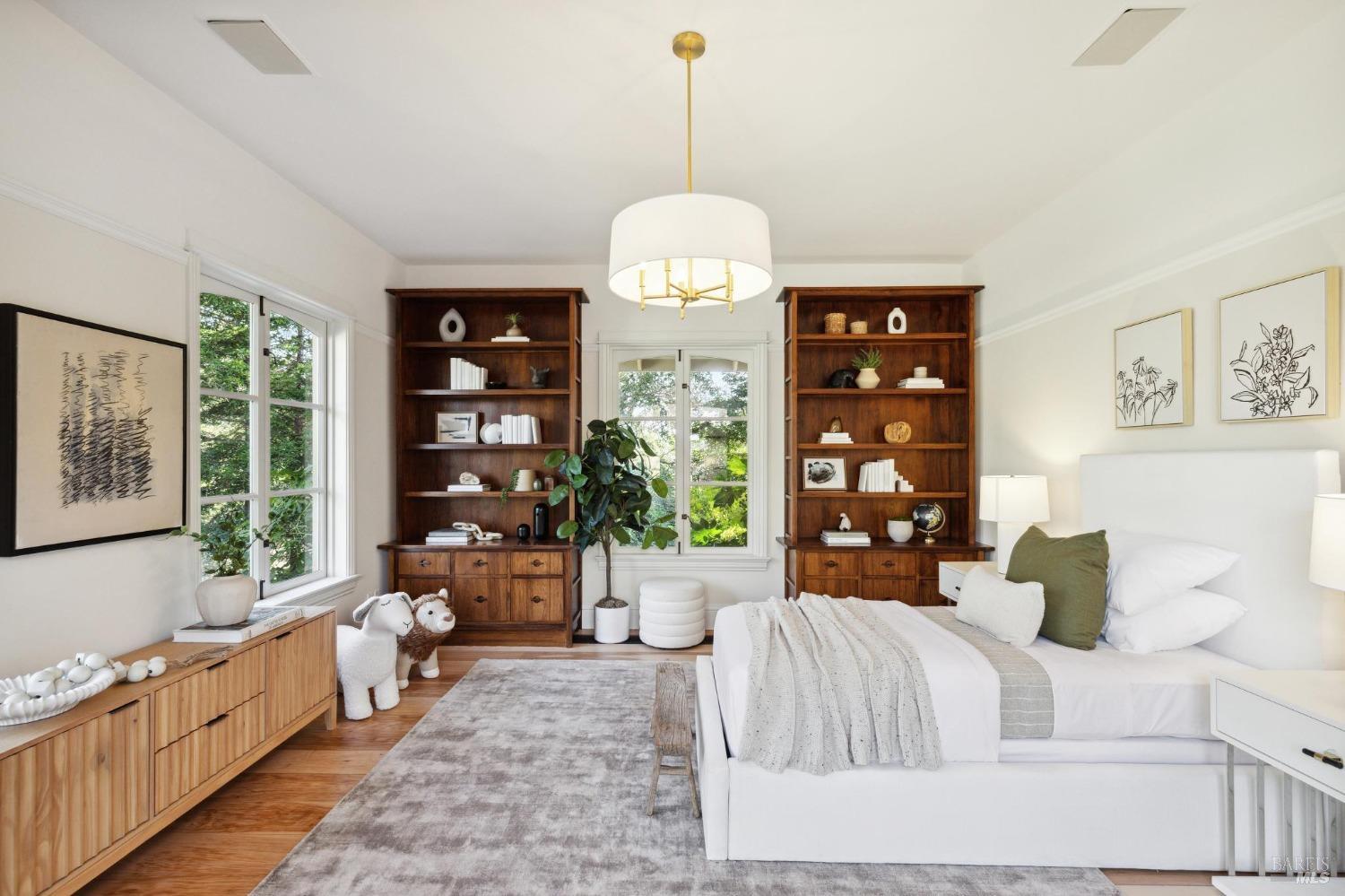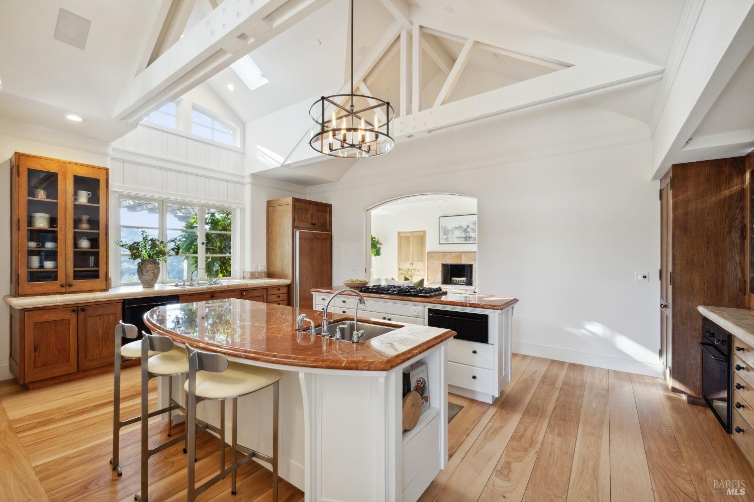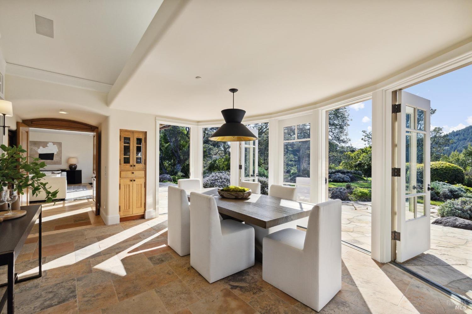 A spectacular view of Mt. Tamalpais sets the stage for this extraordinary, custom-built home in highly desirable Kent Woodlands. Private and ideally situated on 3 acres, this sun-filled home offers a predominantly single-story floor plan, superb scale, and seamless integration between indoor and outdoor living spaces. Step inside and you're greeted with gorgeous light that flows throughout the house thanks to the abundant windows and skylights. Throughout the day, Mt. Tam provides for a captivating, ever-changing backdrop as the sun and fog interplay, providing panoramic, awe-inspiring scenes. The landscaped and natural grounds are adorned with mature oak trees, vibrant lavender, and fragrant roses. There is even ample room for a generously sized pool. This stunning, gated home offers a rare combination of tranquility combined with the convenience of easy access to shops, and cafes, numerous top-rated schools, and nearby hiking and biking trails leading to Phoenix Lake, Larkspur, Mill Valley, to the top of Mt. Tam, and beyond!