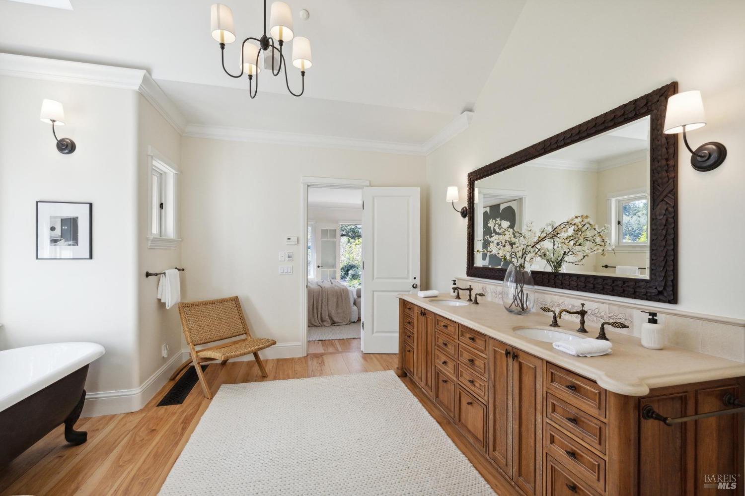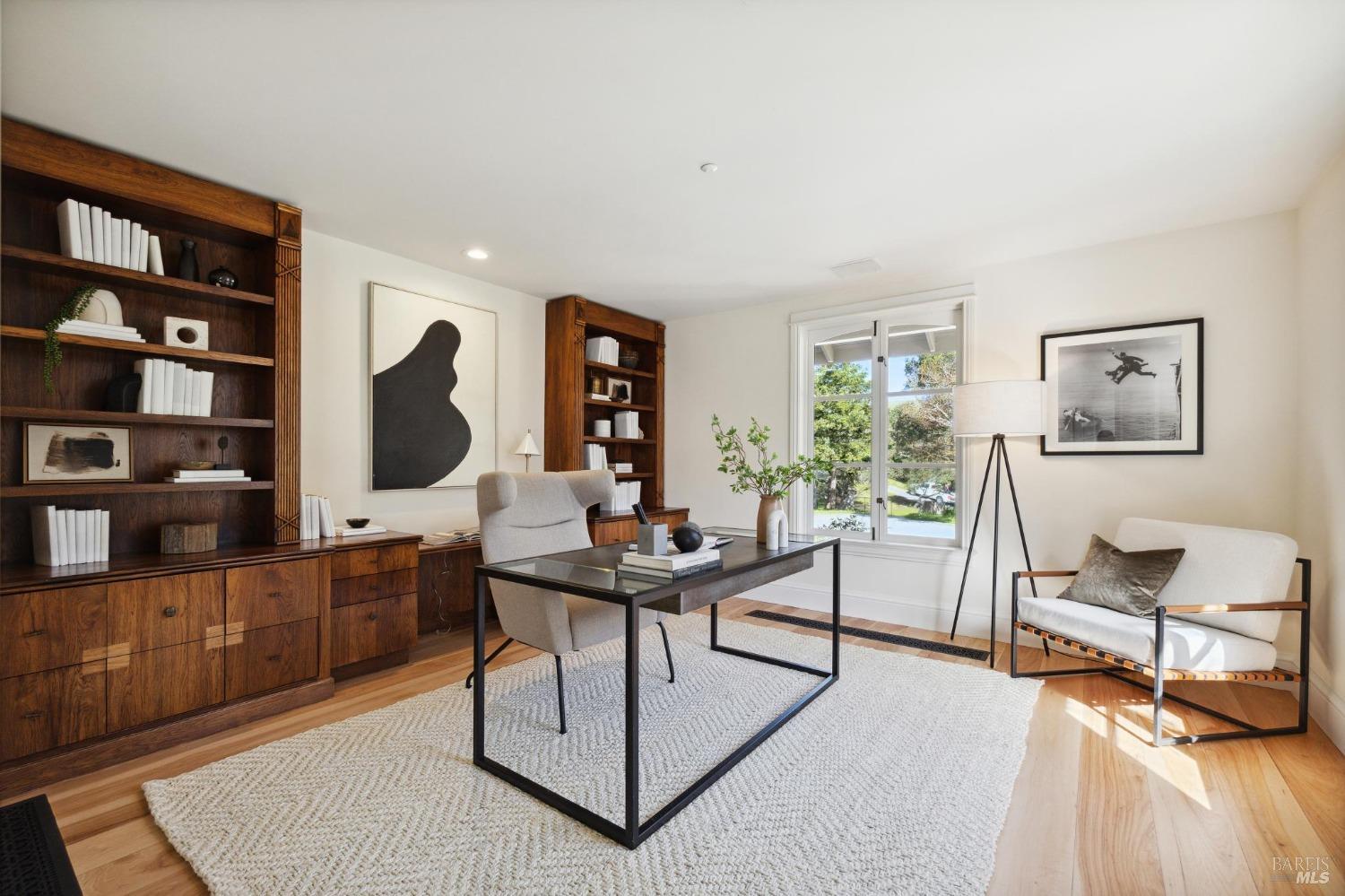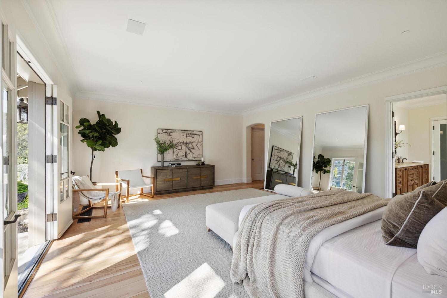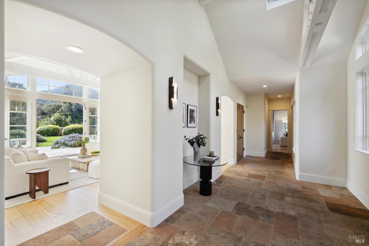 A spectacular view of Mt. Tamalpais sets the stage for this extraordinary, custom-built home in highly desirable Kent Woodlands. Private and ideally situated on 3 acres, this sun-filled home offers a predominantly single-story floor plan, superb scale, and seamless integration between indoor and outdoor living spaces. Step inside and you're greeted with gorgeous light that flows throughout the house thanks to the abundant windows and skylights. Throughout the day, Mt. Tam provides for a captivating, ever-changing backdrop as the sun and fog interplay, providing panoramic, awe-inspiring scenes. The landscaped and natural grounds are adorned with mature oak trees, vibrant lavender, and fragrant roses. There is even ample room for a generously sized pool. This stunning, gated home offers a rare combination of tranquility combined with the convenience of easy access to shops, and cafes, numerous top-rated schools, and nearby hiking and biking trails leading to Phoenix Lake, Larkspur, Mill Valley, to the top of Mt. Tam, and beyond!