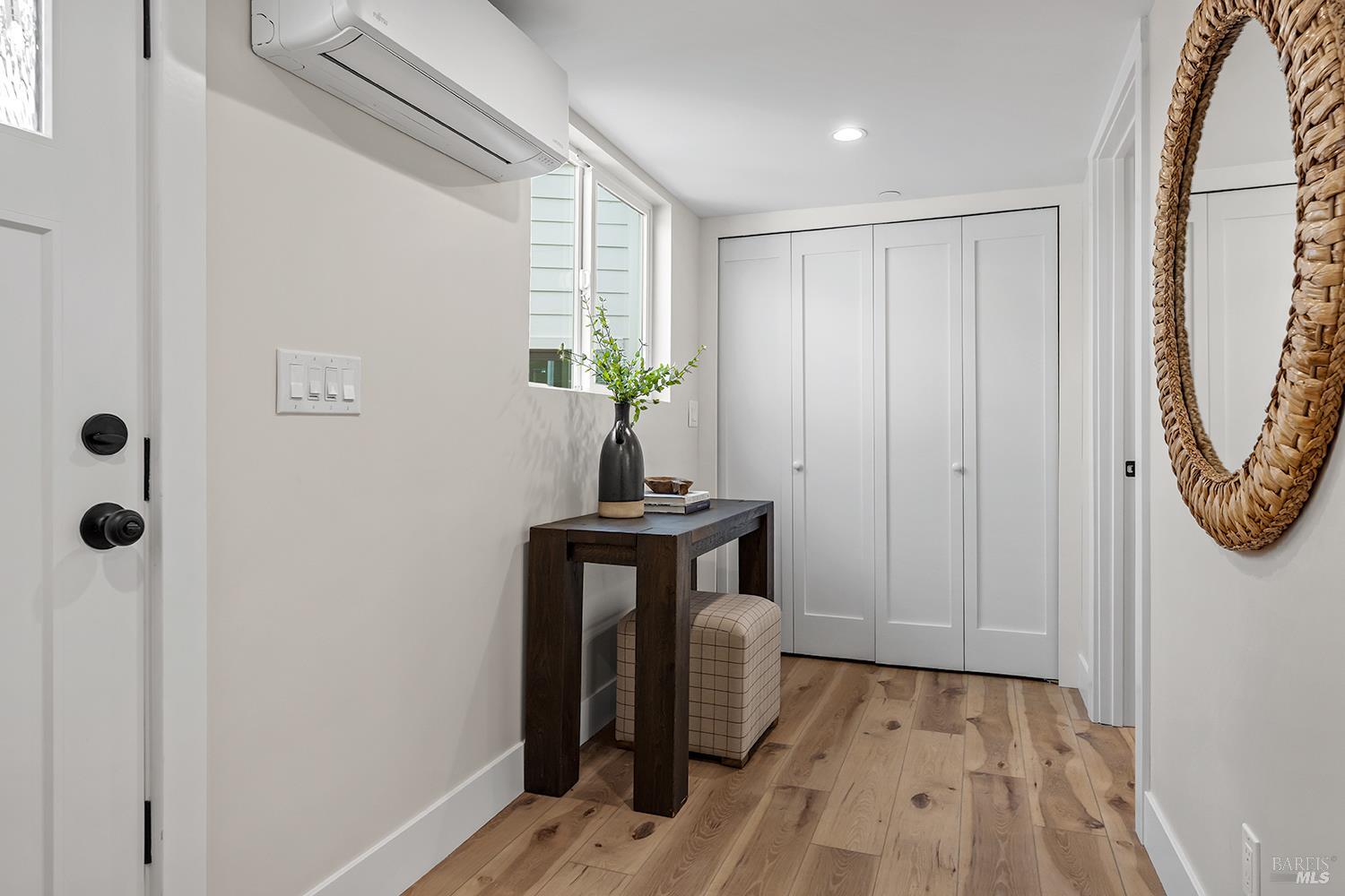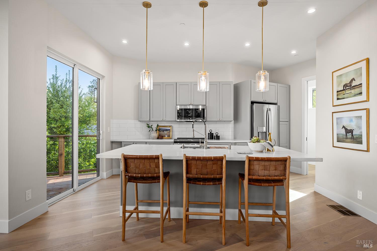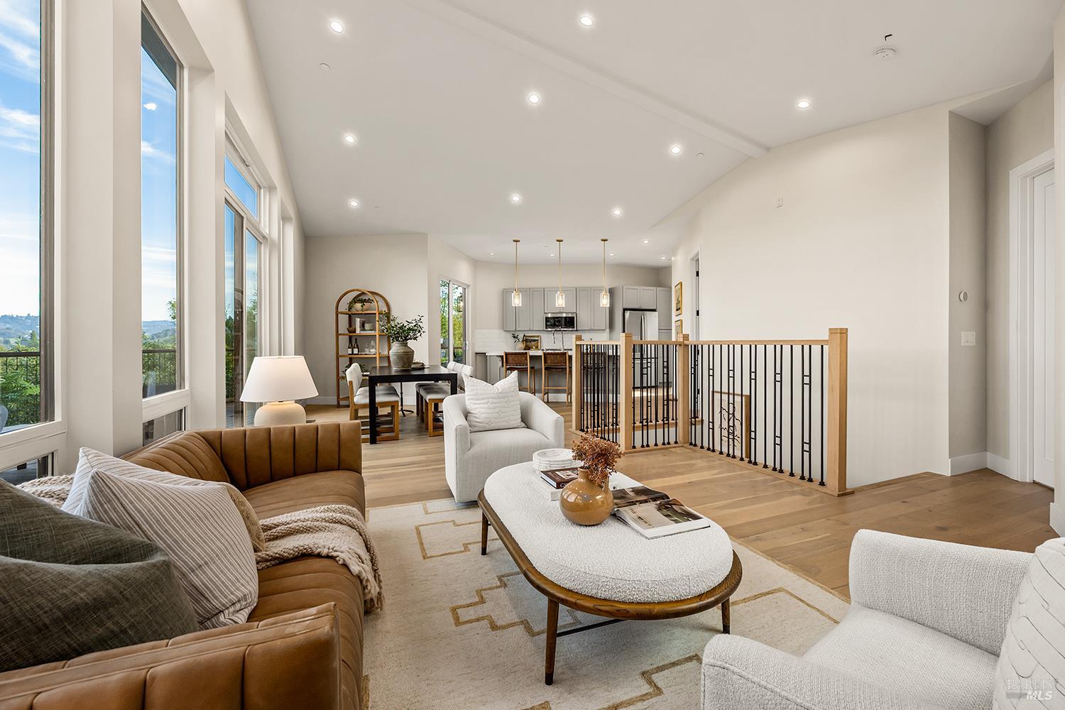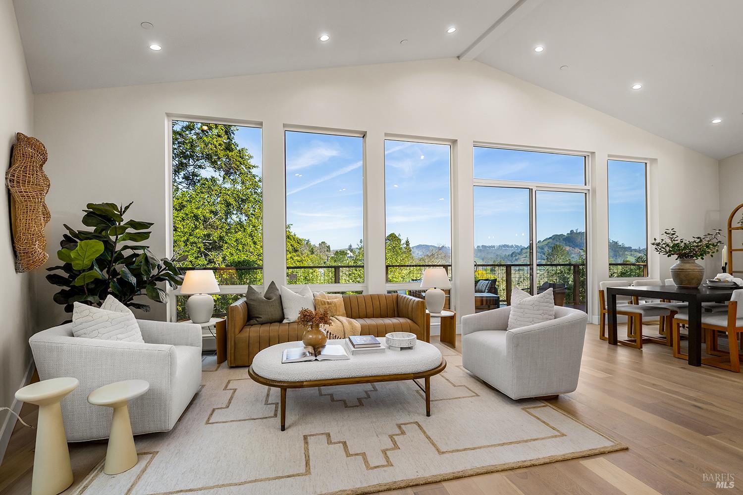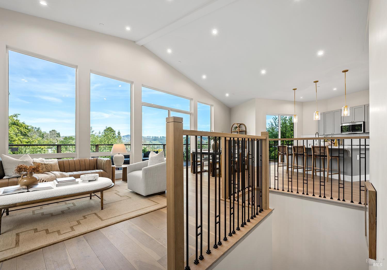 Chic New Construction in the Heart of San Anselmo. Rebuilt from the ground up, this stylish, fully electric, 4BD/3.5BA residence blends modern design, natural light, and a serene, private setting just minutes from award-winning Wade Thomas Elementary and downtown San Anselmo's beloved shops, cafes, and restaurants. Close to open space with easy access to nearby hiking and nature trails, the home offers expansive hillside and treetop views while maintaining a peaceful sense of retreat. The open-concept main level features soaring windows, clean architectural lines, and seamless indoor-outdoor flow. A sleek chef's kitchen with generous island and premium appliances anchors the space, perfect for both entertaining and everyday living. Step onto the expansive deck to enjoy sun-soaked views, fresh air, and effortless outdoor dining. The main-level primary suite provides a tranquil escape with a walk-in closet and spa-inspired bath, complemented by a chic powder room for guests. Downstairs, two additional bedrooms and a full bath open to a second deck ideal for guests, a home office, or flexible living with direct outdoor access. A separate, fully finished in-law unit with its own bedroom, bath, living area, and laundry adds exceptional versatility, perfect as a guest suite, private office, creative studio, or potential income opportunity. Brand-new construction, fully electric with modern systems, and a rare combination of privacy, views, and walkability, this move-in-ready home delivers the best of contemporary Marin living close to schools, nature, and the vibrant San Anselmo community.