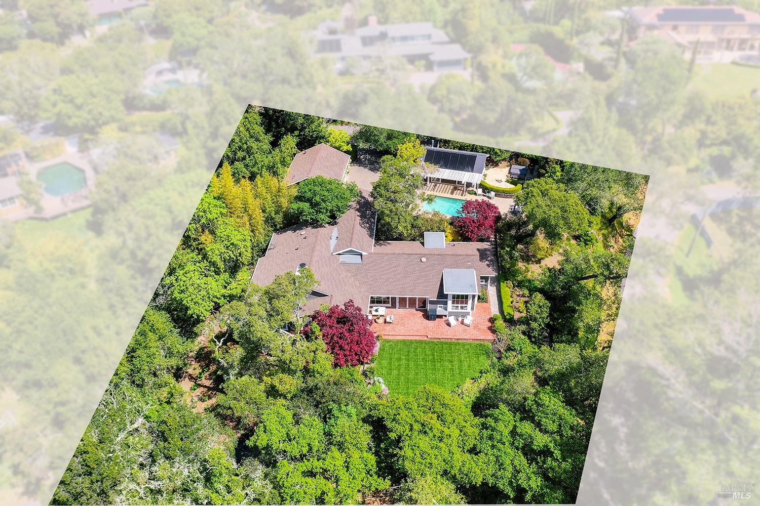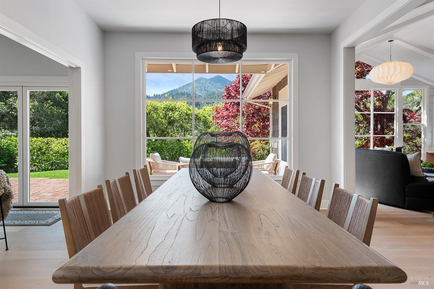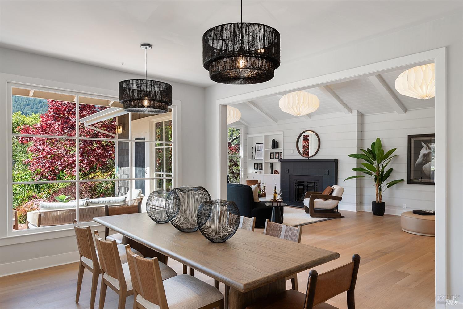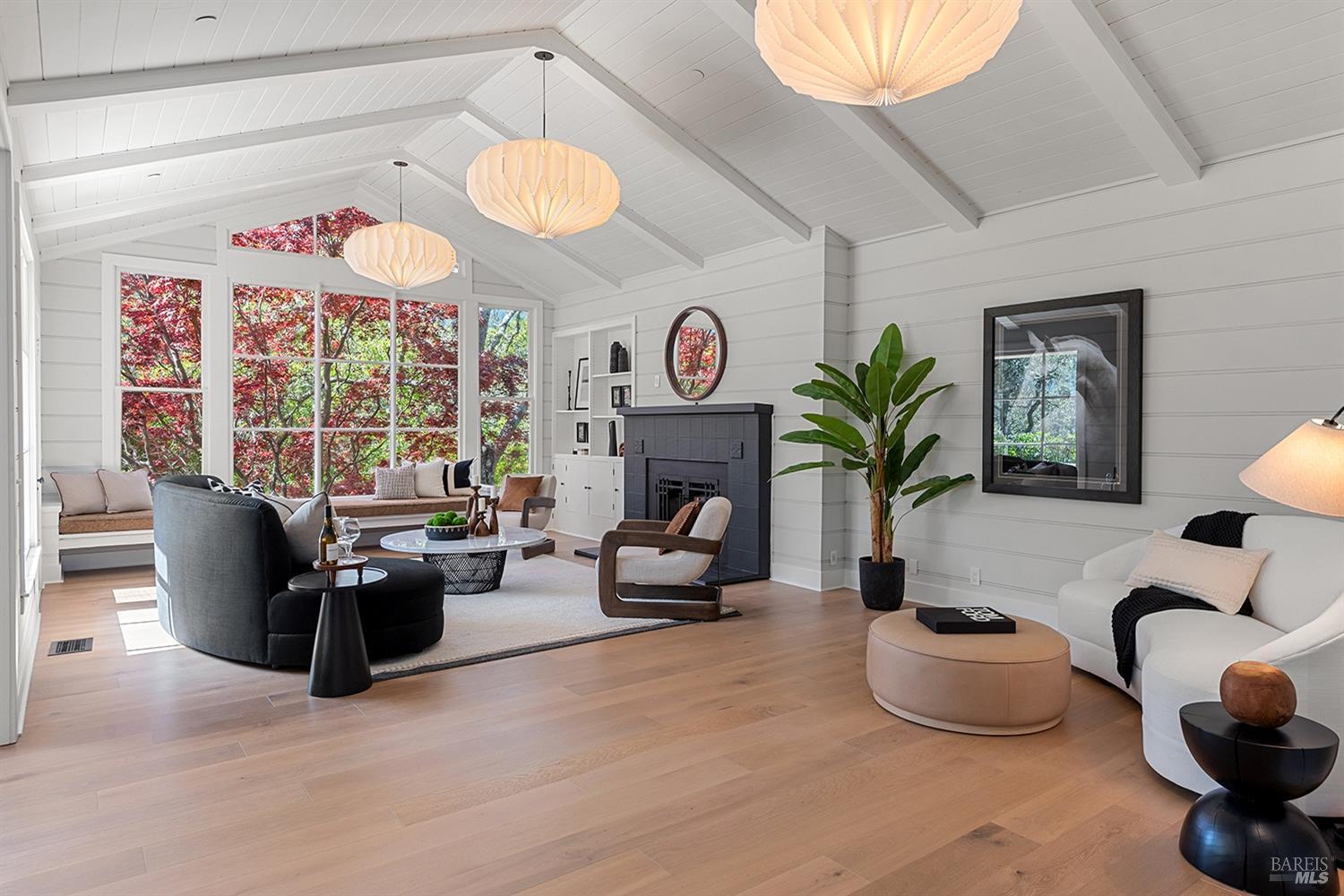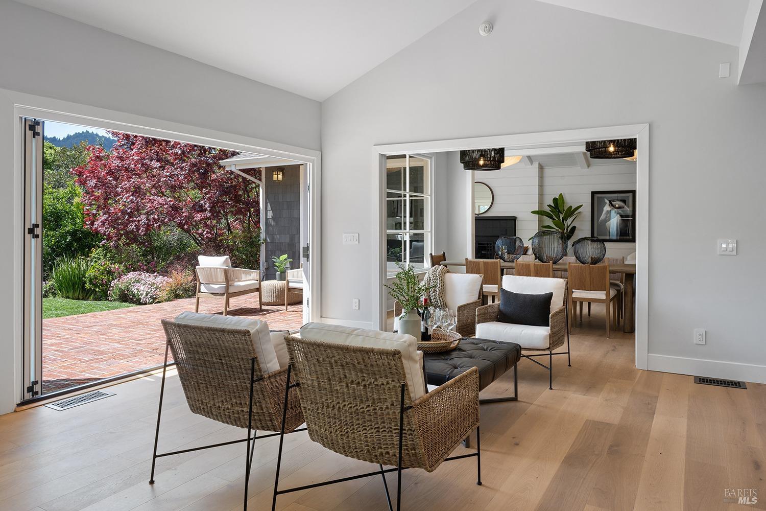 A rare and extraordinary find in lower Kent Woodlands, 8 Live Oak Way is the kind of property that almost never comes available. Set on a private, sun-drenched, 0.66 acre street-to-street lot at the end of a quiet lane, this 5,155 sq. ft. gated compound offers total seclusion, breathtaking scale, and sensational indoor-outdoor flow. The dramatic living room stuns with vaulted, exposed beam ceilings and walls of glass. The kitchen is a showpiece, with a statement island and picture window perfectly framing Mt. Tam. The Main level includes open living spaces, a sun-drenched, expansive primary with direct Mt.Tam views, an additional bedroom, a dedicated office, and laundry room. Downstairs, enjoy a rec room with two ensuite bedrooms and access to the outdoors. Two additional structures elevate the lifestyle: a 315 sq. ft. guest house with kitchenette and bath, and a 390 sq. ft. pool house featuring a full-length multi-slide glass door which opens completely to reveal stunning views of Mt. Tam and the glittering pool beyond, creating a true sanctuary of indoor-outdoor living. Additionally there's a hot tub, level lawn, lush gardens, motor court, EV charging, and A/C. A true Kent Woodlands retreat; private, polished, and unforgettable.
