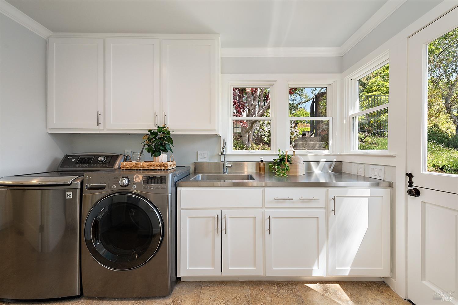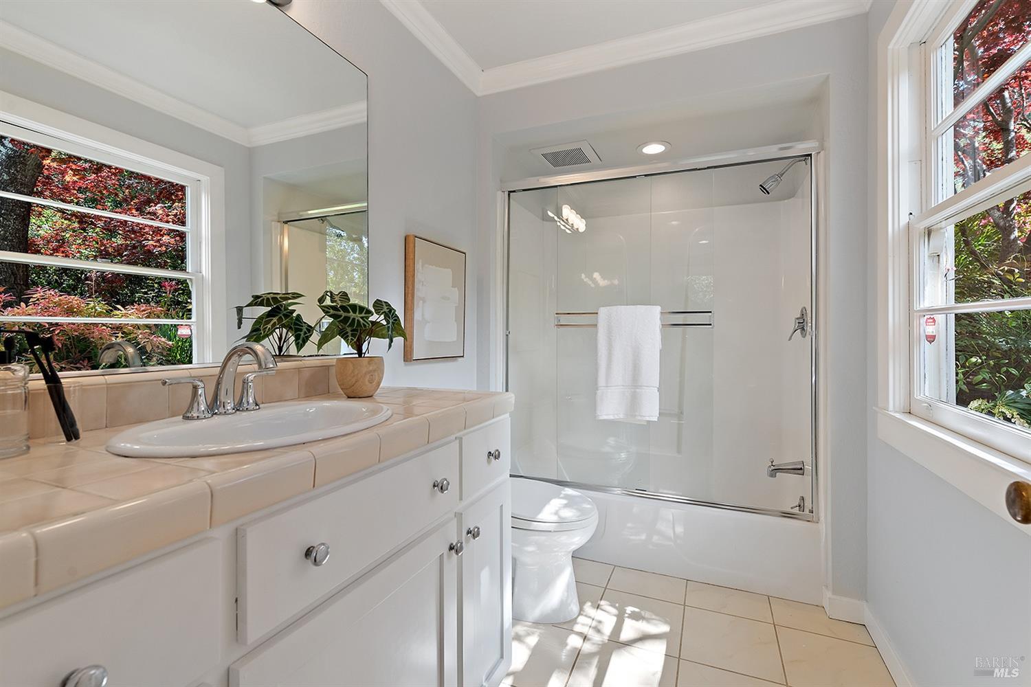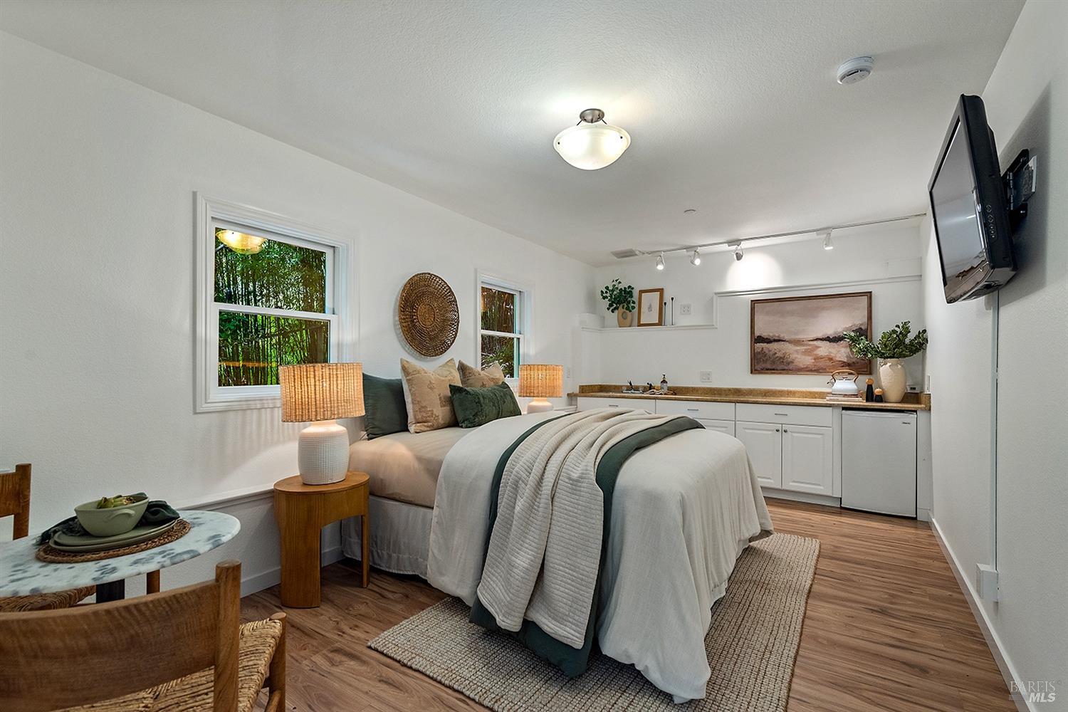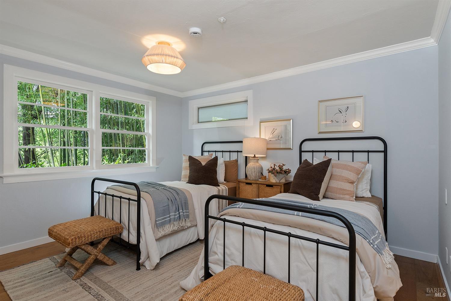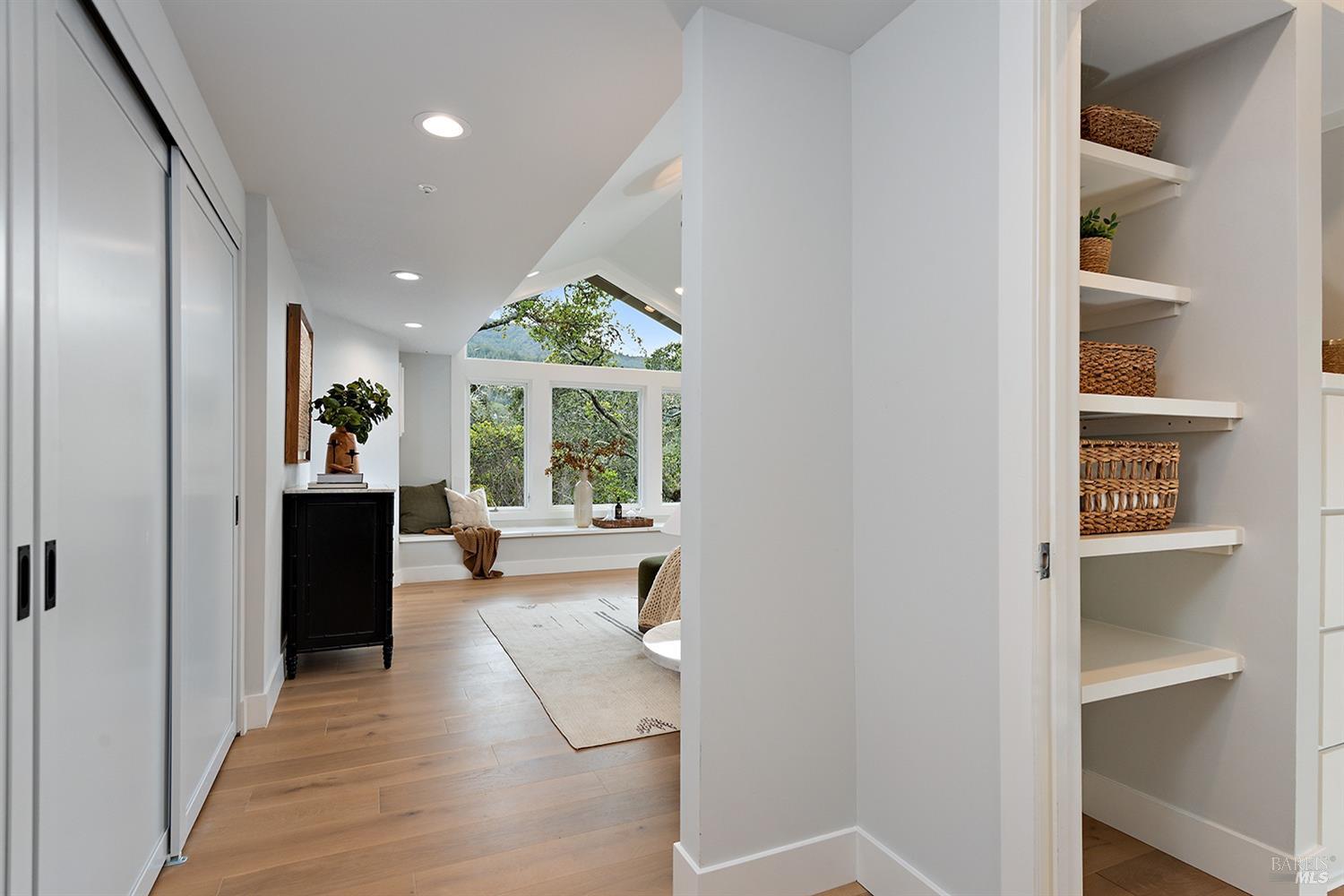 A rare and extraordinary find in lower Kent Woodlands, 8 Live Oak Way is the kind of property that almost never comes available. Set on a private, sun-drenched, 0.66 acre street-to-street lot at the end of a quiet lane, this 5,155 sq. ft. gated compound offers total seclusion, breathtaking scale, and sensational indoor-outdoor flow. The dramatic living room stuns with vaulted, exposed beam ceilings and walls of glass. The kitchen is a showpiece, with a statement island and picture window perfectly framing Mt. Tam. The Main level includes open living spaces, a sun-drenched, expansive primary with direct Mt.Tam views, an additional bedroom, a dedicated office, and laundry room. Downstairs, enjoy a rec room with two ensuite bedrooms and access to the outdoors. Two additional structures elevate the lifestyle: a 315 sq. ft. guest house with kitchenette and bath, and a 390 sq. ft. pool house featuring a full-length multi-slide glass door which opens completely to reveal stunning views of Mt. Tam and the glittering pool beyond, creating a true sanctuary of indoor-outdoor living. Additionally there's a hot tub, level lawn, lush gardens, motor court, EV charging, and A/C. A true Kent Woodlands retreat; private, polished, and unforgettable.