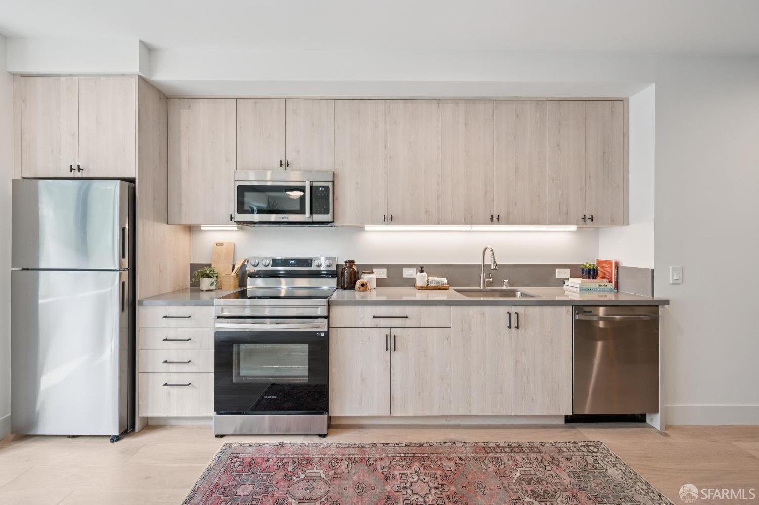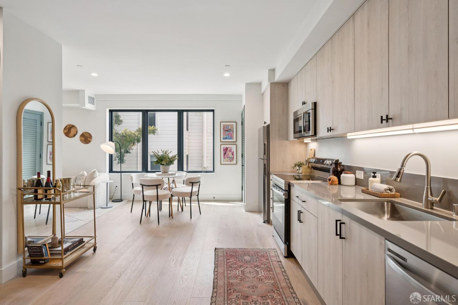 Nestled in the vibrant heart of the Mission & Valencia Corridor, this newly constructed boutique building is a finely tuned balance of function and form, with breathtaking views in every direction. Unit 303 is a custom-finished interior with under-mount lighting, sleek stainless-steel appliances and exquisite quartz countertops with posh backsplash accents. Refined bathrooms offer custom vanities with under-mount sinks, tub and shower combinations with tile surrounds, and built-in shelving. The living room and dining areas feature large windows to maximize the natural light and the serene view to the rear garden. The bedroom vestibule has an additional closet for storage. These residences are conveniently located near the hottest Valencia Corridor shops and restaurants, and close to BART & public transportation. Features include hardwood floors, in-unit laundry, Samsung/Bosch appliance package, heating & air-conditioning and soundproofing between units & common walls. Building offers garage parking (additional expense), bike storage, shared rear garden & elevator access to all levels including a spectacular shared roof deck with 360 degree views.
